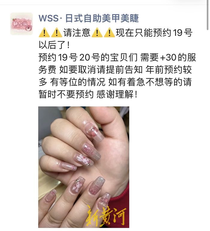 “最近来的顾客太多了,从现在到腊月二十九几乎全约满了。为了方便顾客我们店采取预约制,所以我们会提醒顾客,一定要提前取号!”16日上午,新黄河记者走访历下区部分美甲、美睫店发现,几乎每一家店铺的闭店时间都进行了推迟。同时,消费者想体验项目需提前预约。