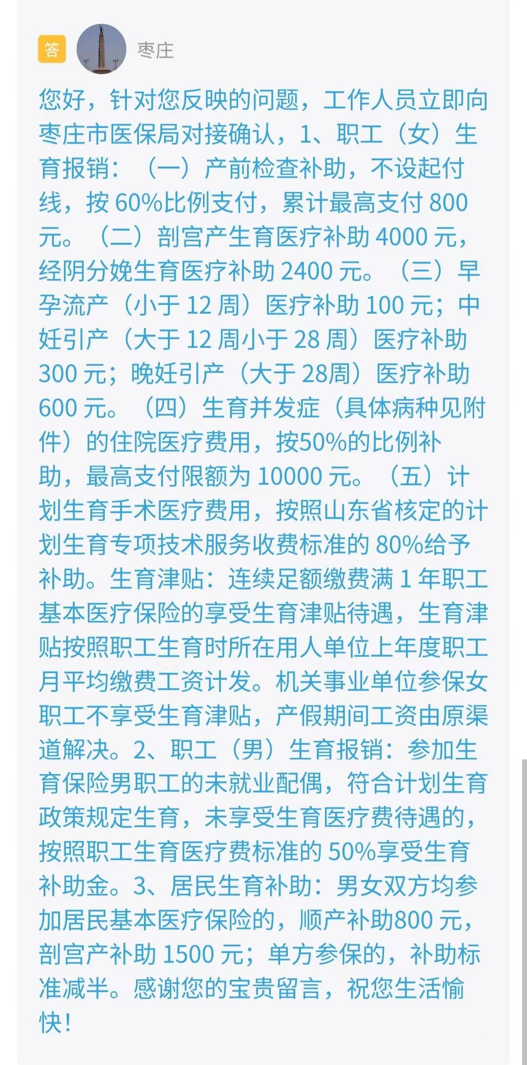 齐鲁网·闪电新闻3月14日讯 枣庄一位网友在《问政山东》网络问政平台留言说,他想咨询一下山东省职工生育保险报销的相关政策,比如:男性是否也有职工生育保险?