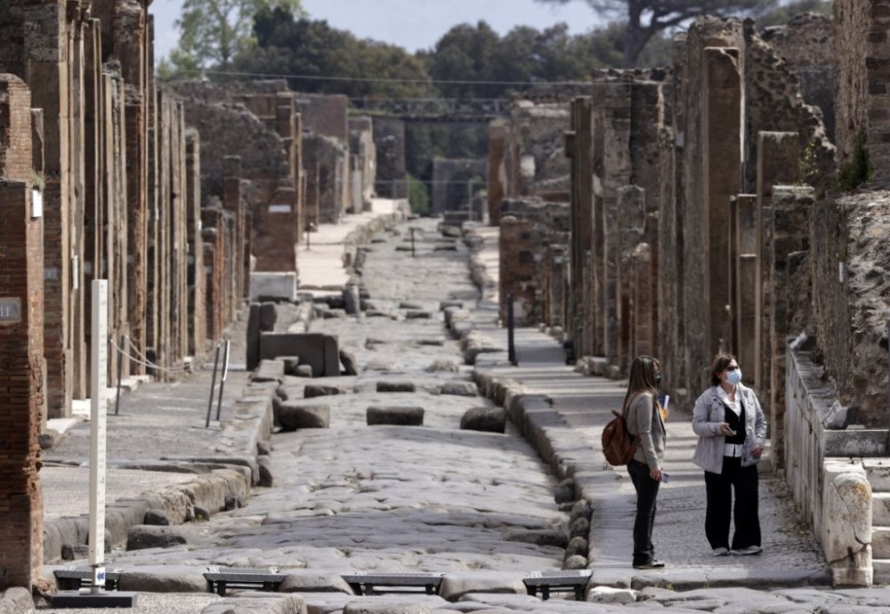 2021年4月27日,游客在意大利庞贝古城参观。新华社发