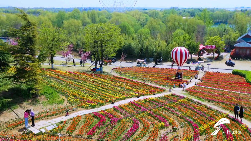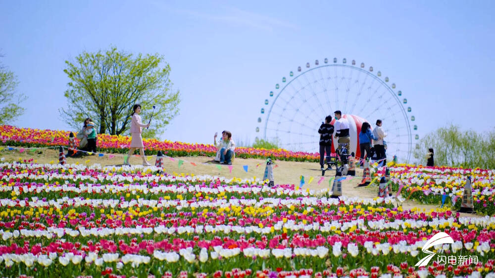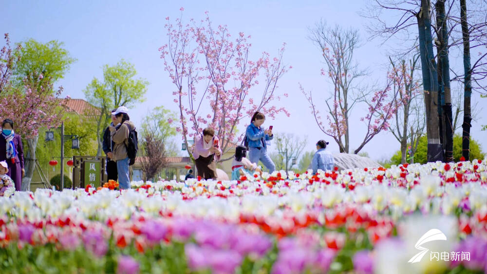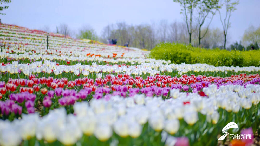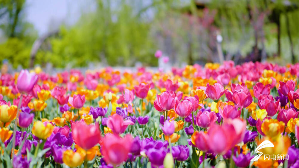 齐鲁网·闪电新闻4月11日讯 在泰安泰山花海景区,上万株郁金香盛情绽放,宛如渲染浑然天成的油画。游客纷纷驻足欣赏如多彩玉杯般的花朵,芬芳艳丽、迎风摇曳,交织出五彩斑斓的波浪,成为春日最亮眼的色彩。闪电新闻记者 王子翔 通讯员 刘杨 泰安报道