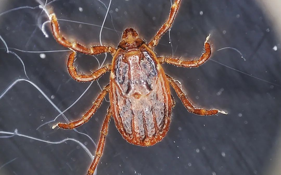 蜱虫俗称壁虱、扁虱、草爬子、狗豆子等,颜色呈红褐色或灰褐色,长卵圆形,背腹扁平,从芝麻粒大到黄豆大。蜱是许多种脊椎动物体表的暂时性寄生虫,是一些人兽共患病的传播媒介和贮存宿主。
