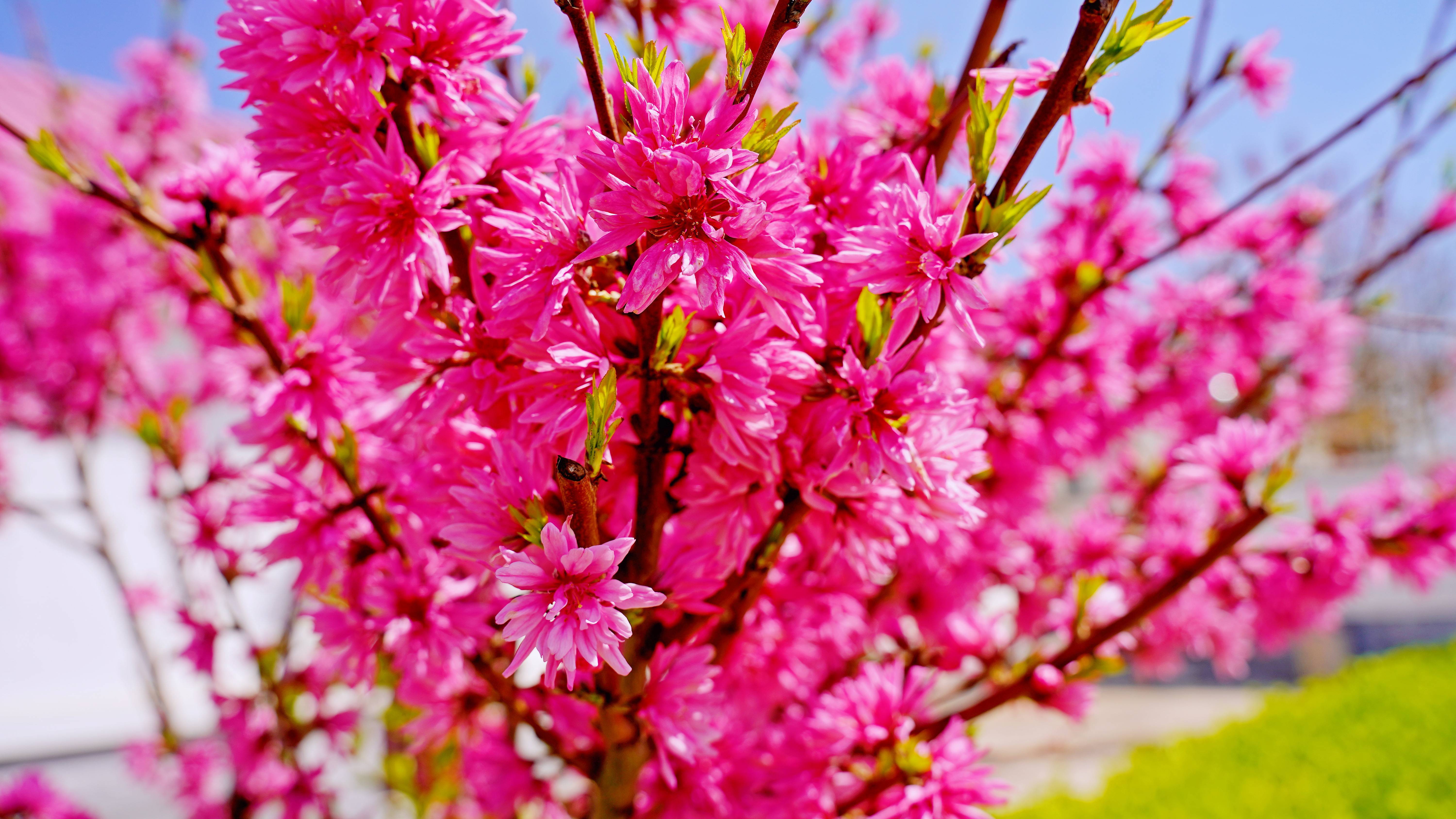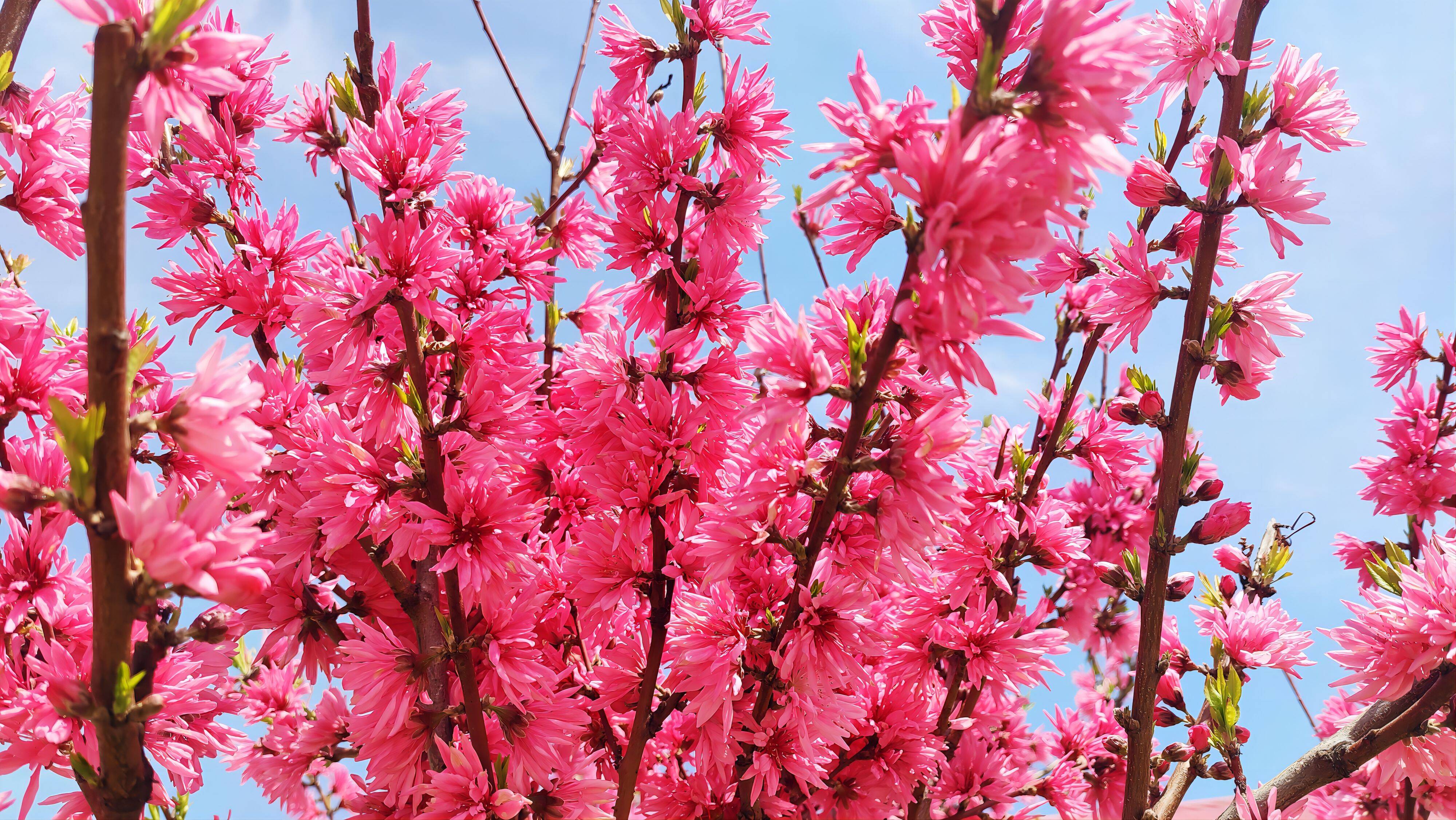近日,宁阳县东疏镇菊花桃进入盛放期,霎时间树枝被染上了一层玫红色,给热闹的春季增添了几分活力。据了解,菊花桃是是观赏桃类的珍贵品种,其叶片椭圆状披针形,花为粉红色和红色,盛开时酷似菊花,与常见的桃花花型大为不同,令人惊艳。菊花桃花期将持续至4月上旬。