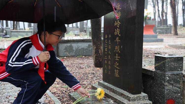 在烈士纪念碑前,参加仪式人员首先向革命烈士敬献花篮、默哀,全体人员向烈士鞠躬,表达自己对革命先烈的无限缅怀之情。学生代表在纪念碑前号召同学们向烈士学习,珍惜现在的美好时光,学好过硬本领,争取早日报效祖国。