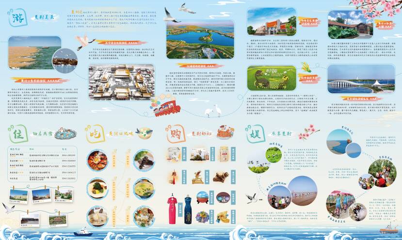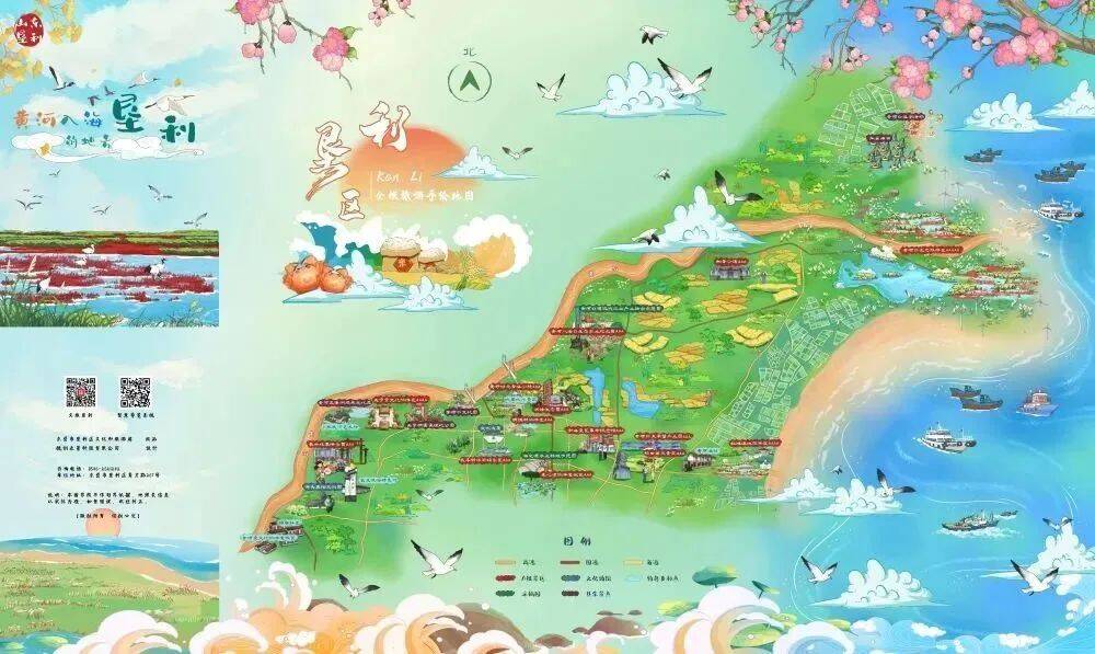 设计风格上,对垦利区的旅游景点采用了目前流行的手绘形式,个性定制,设计清新、画风流畅,具有较强的艺术感。