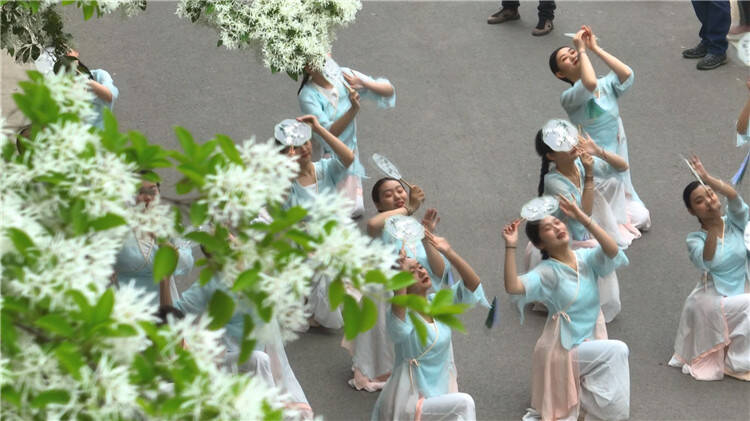 流苏艺术节采用艺术雅集的方式举行。流苏树下,舞蹈、古琴演奏、非遗展演等节目优雅清新、看点十足,将自然之美与艺术之美完美融合,为市民奉献了一场精彩的文化盛宴。