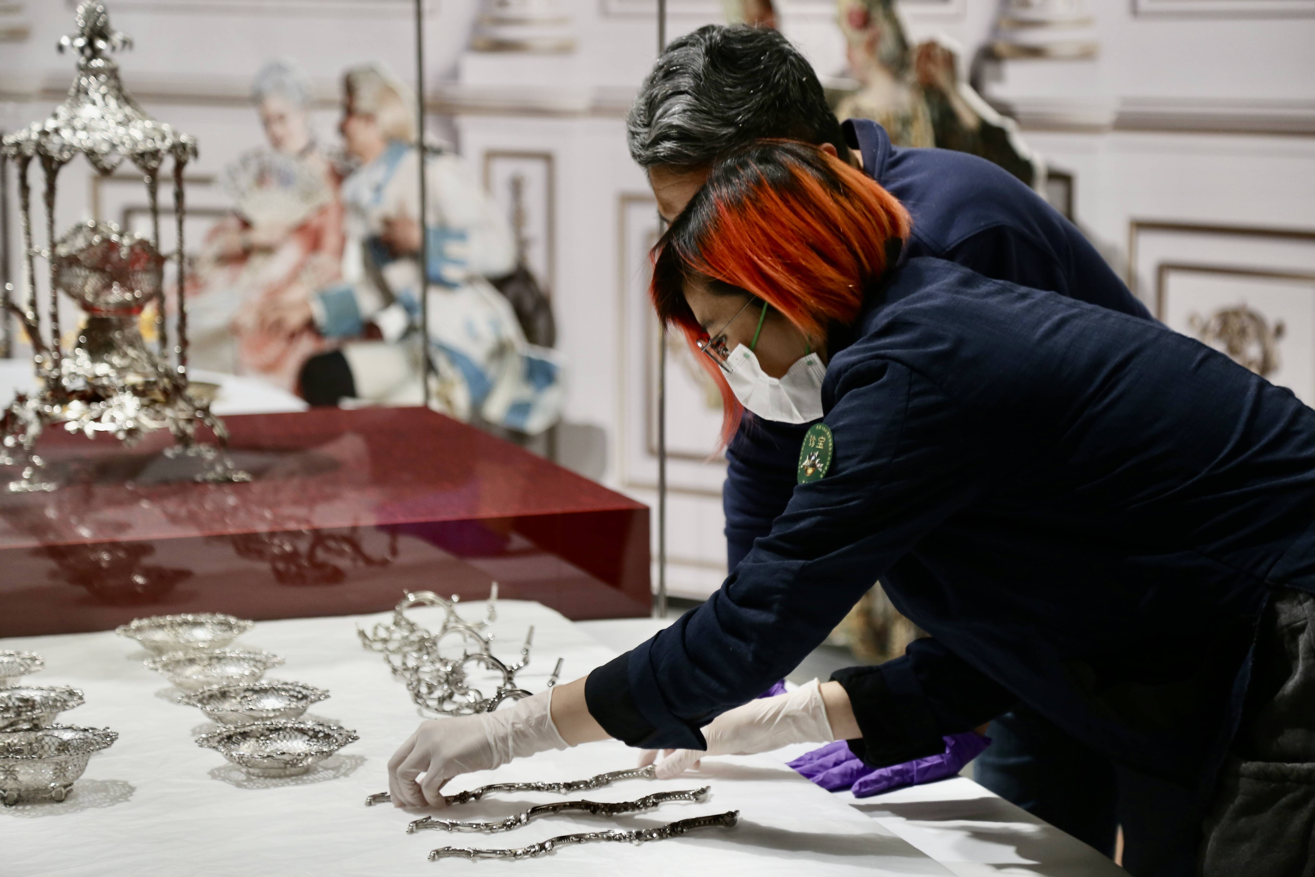 在众多的珍宝中,尤以拿破仑一世鼻烟盒与多层饰盘最具代表性,在4月24日的开箱活动中,就为我们展示了这两件珍宝的上展过程,集中呈现了欧洲17-19世纪袖珍肖像画、鼻烟盒与银器的制作工艺与艺术水平,成为人类文明瑰宝的一颗颗璀璨明珠。