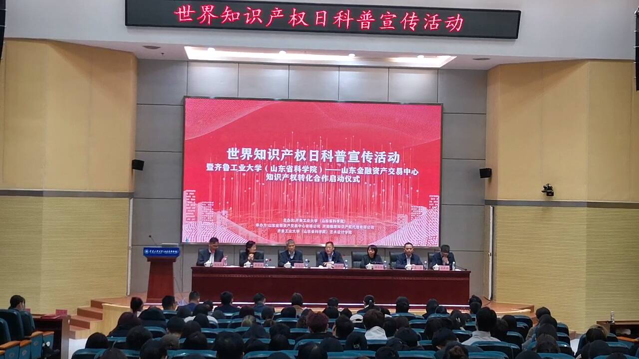 齐鲁网·闪电新闻4月24日讯 (山东台综合广播 吴宝镇)4月24日,在“世界知识产权日”来临之际,为进一步促进知识产权创新创造,推动科技成果转移转化,山东金融资产交易中心联合齐鲁工业大学(山东省科学院)共同举办“世界知识产权日科普宣传活动暨齐鲁工大(省科学院)——山东金交中心知识产权转化合作启动仪式”。