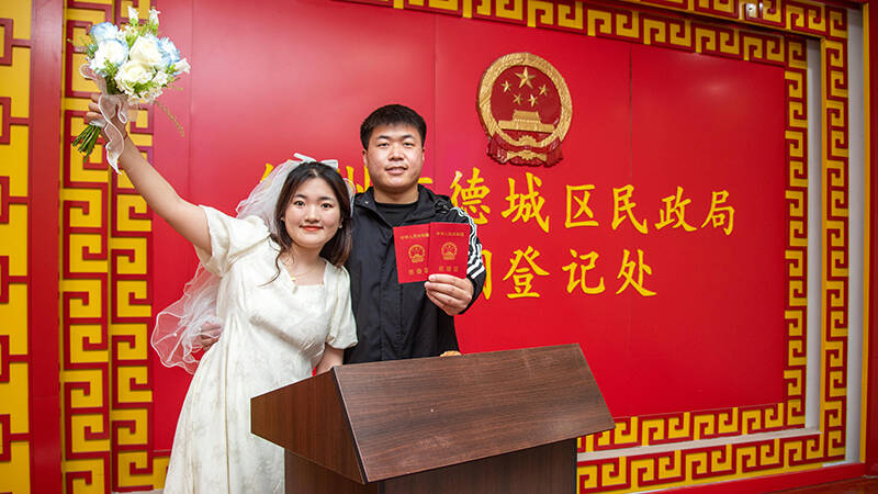 May 20th has become a peak wedding registration day for young people in China in recent yearse due to its homophonic "I love you". Click the video to share their happiness.