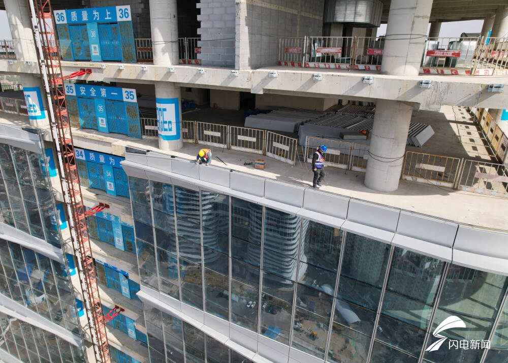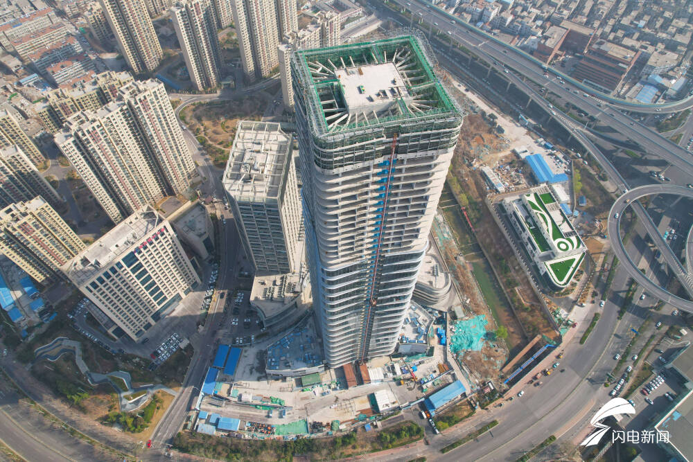 齐鲁网·闪电新闻5月25日讯 济南绿地新都会龙玺大厦项目位于济南市中区英雄山路与二环南路交汇处,总用地面积约262亩,总建筑面积约100万平方米,总投资约80亿元。地上48层,总高度211.45米,是二环以内为数不多的200米以上级超高层建筑。现已进入幕墙施工阶段,如今该楼幕墙安装已经过半。