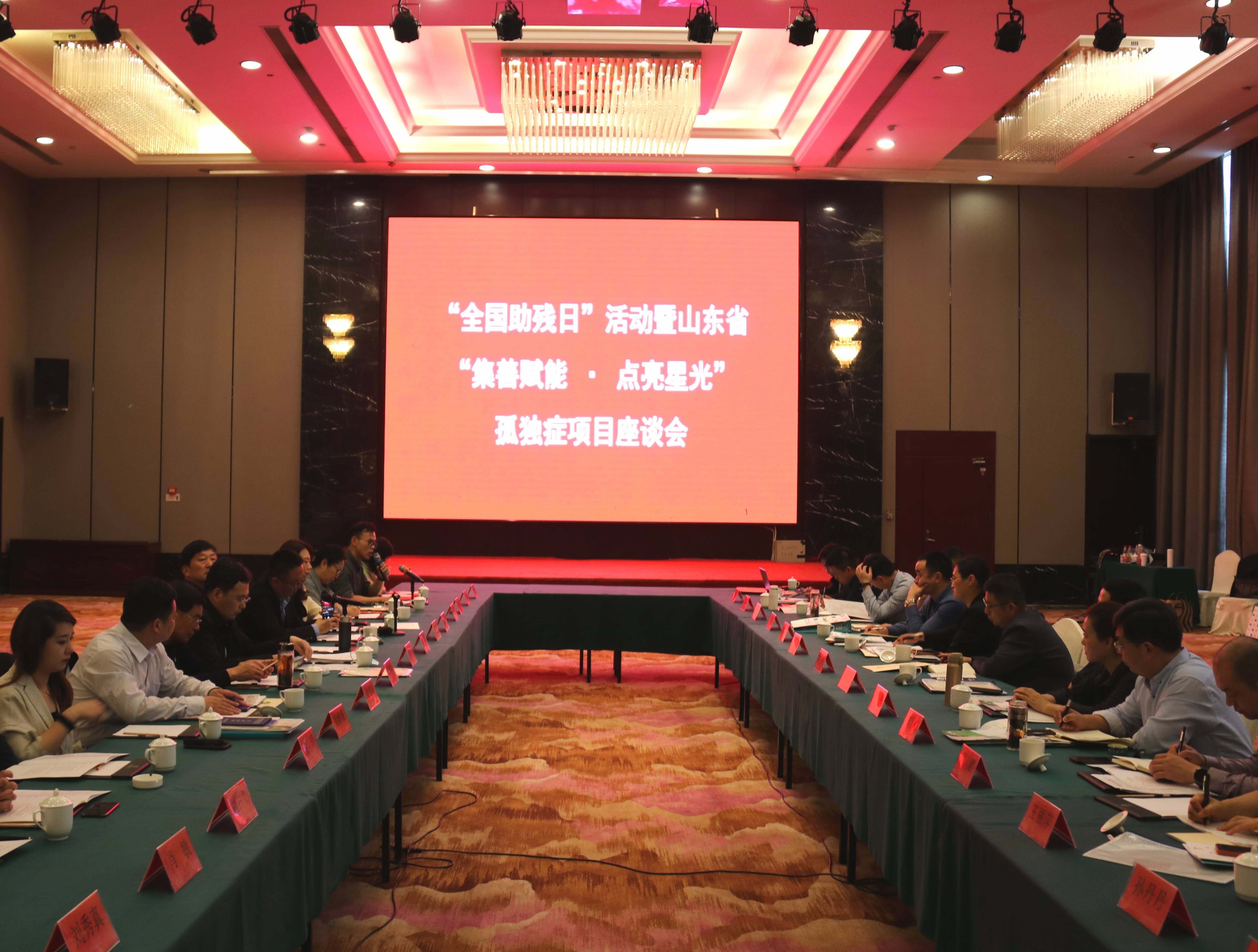 仪式开始前,由省残联康复部、省基金会共同组织召开了山东省“集善赋能·点亮星光”孤独症项目和康复工作座谈会,会上孤独症专家进行专题辅导,与会人员就如何落实公益项目和年度康复重点工作进行了座谈交流,省残联康复部副部长(主持工作)郭辉、省基金会理事长杨忠民共同主持会议,东营、烟台、潍坊、济宁、泰安、德州、聊城、滨州、菏泽市残联分管领导及项目负责人,省基金会、泰安市残联、北京正在关怀科技有限公司相关人员参加会议。