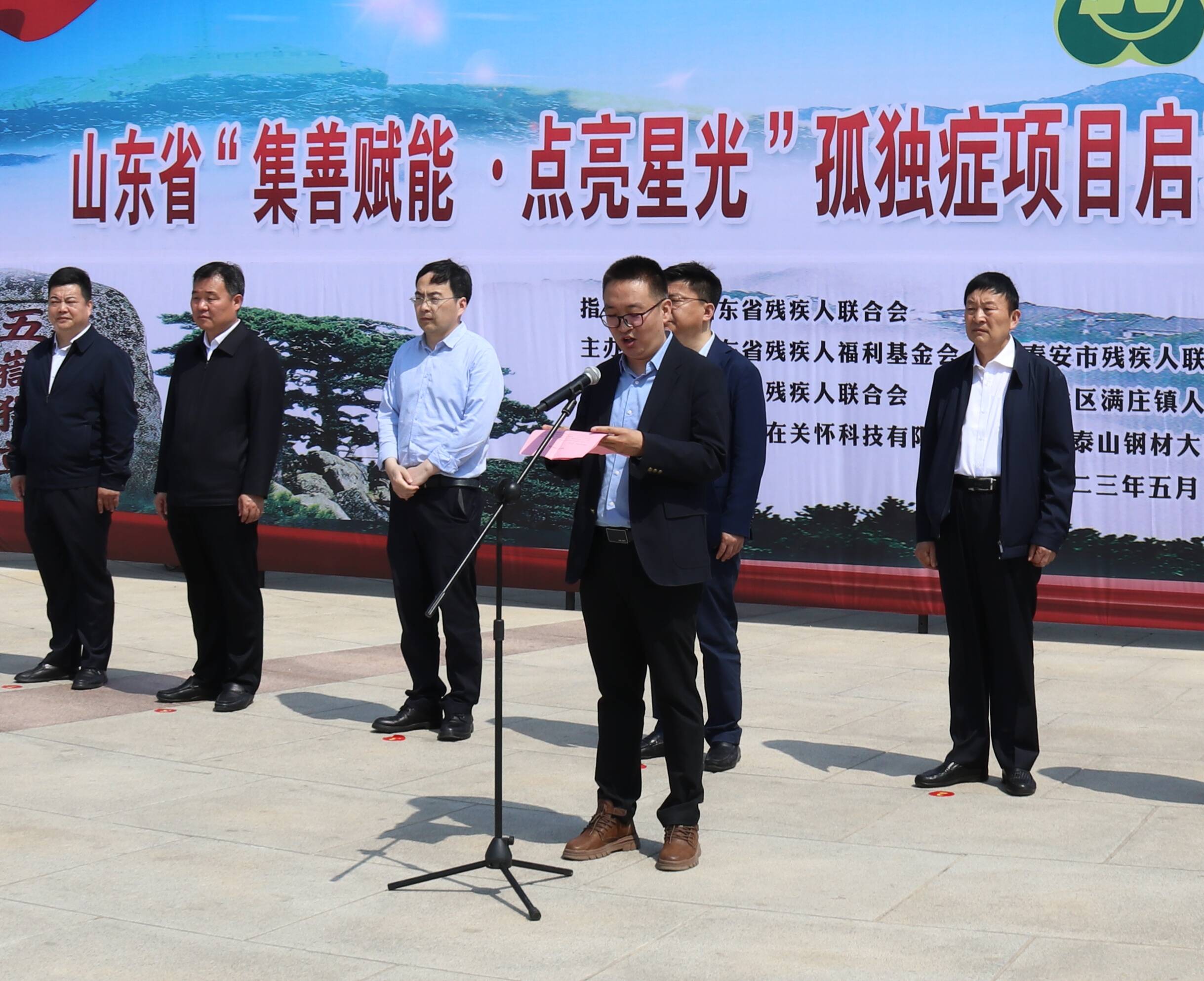 5月12日,山东省“集善赋能·点亮星光”孤独症项目启动仪式暨“全国助残日”活动在泰安隆重举行。泰安市委常委、副市长姜宁,山东省残疾人福利基金会理事长杨忠民出席活动仪式并分别致辞,省残联康复部副部长(主持工作)郭辉、泰安市政府副秘书长李建蔚、泰安岱岳区区委常委、办公室主任刘峰等参加活动。仪式由泰安市残疾人联合会理事长侯卫国主持。