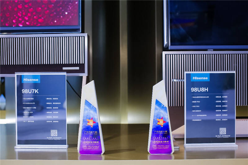 海信基于全新高端画质技术平台ULED X开发的U8H和U7K参考级影像电视,及激光电视新产品L8K,凭借引领行业趋势的技术优势和在高端市场上的出色表现,斩获“Leader产品创新大奖”。