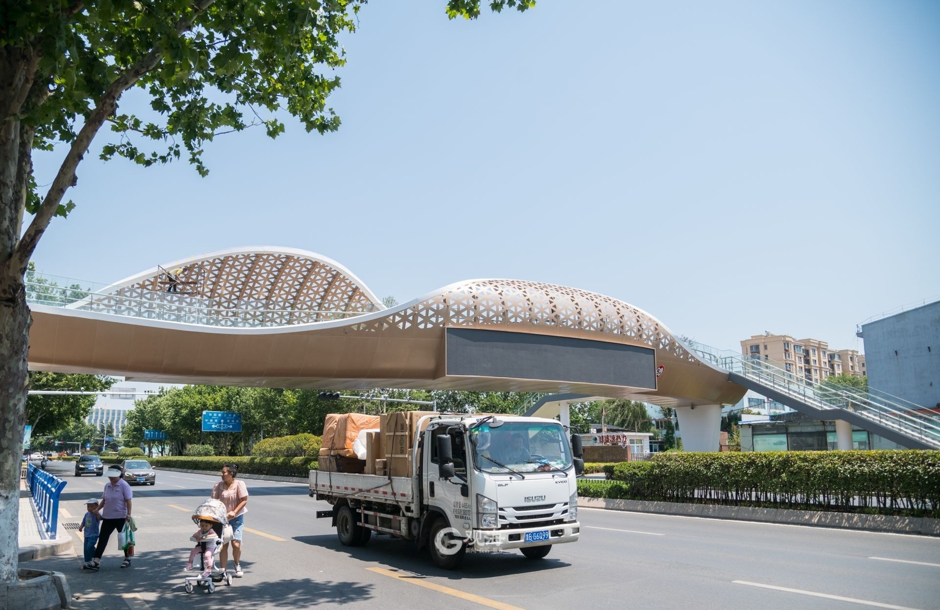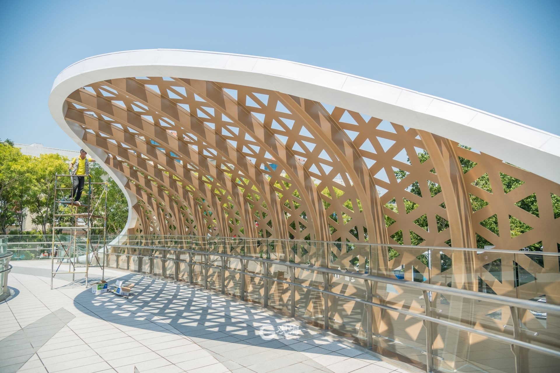 桥体两侧景观装饰酷似翻动的“海浪”。