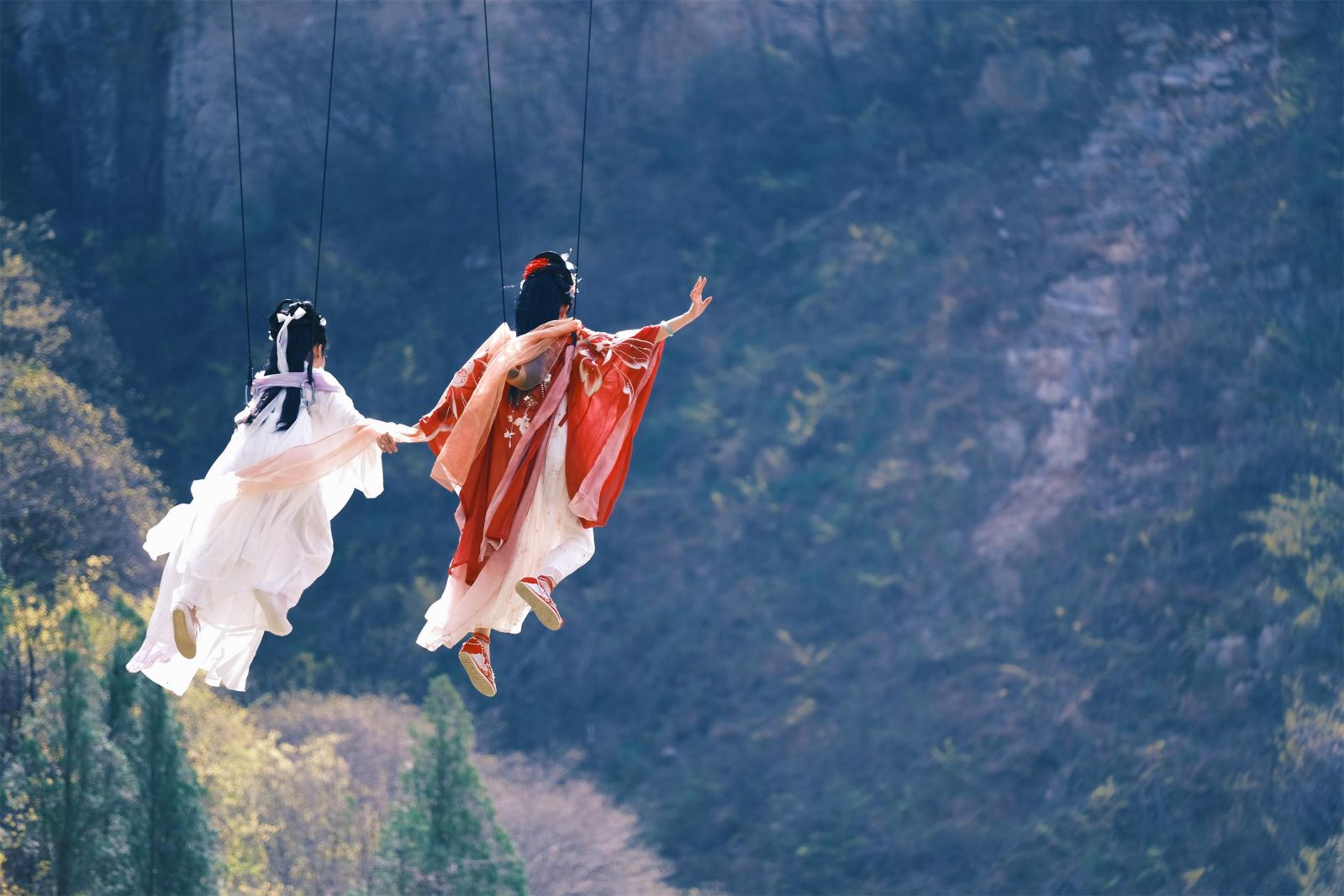 高空威亚可两人同时体验,游客不仅可以在山水间自由飞翔,一览山川美景,同时可穿上古装做各种动作,体验仙侠世界、快意江湖的洒脱。