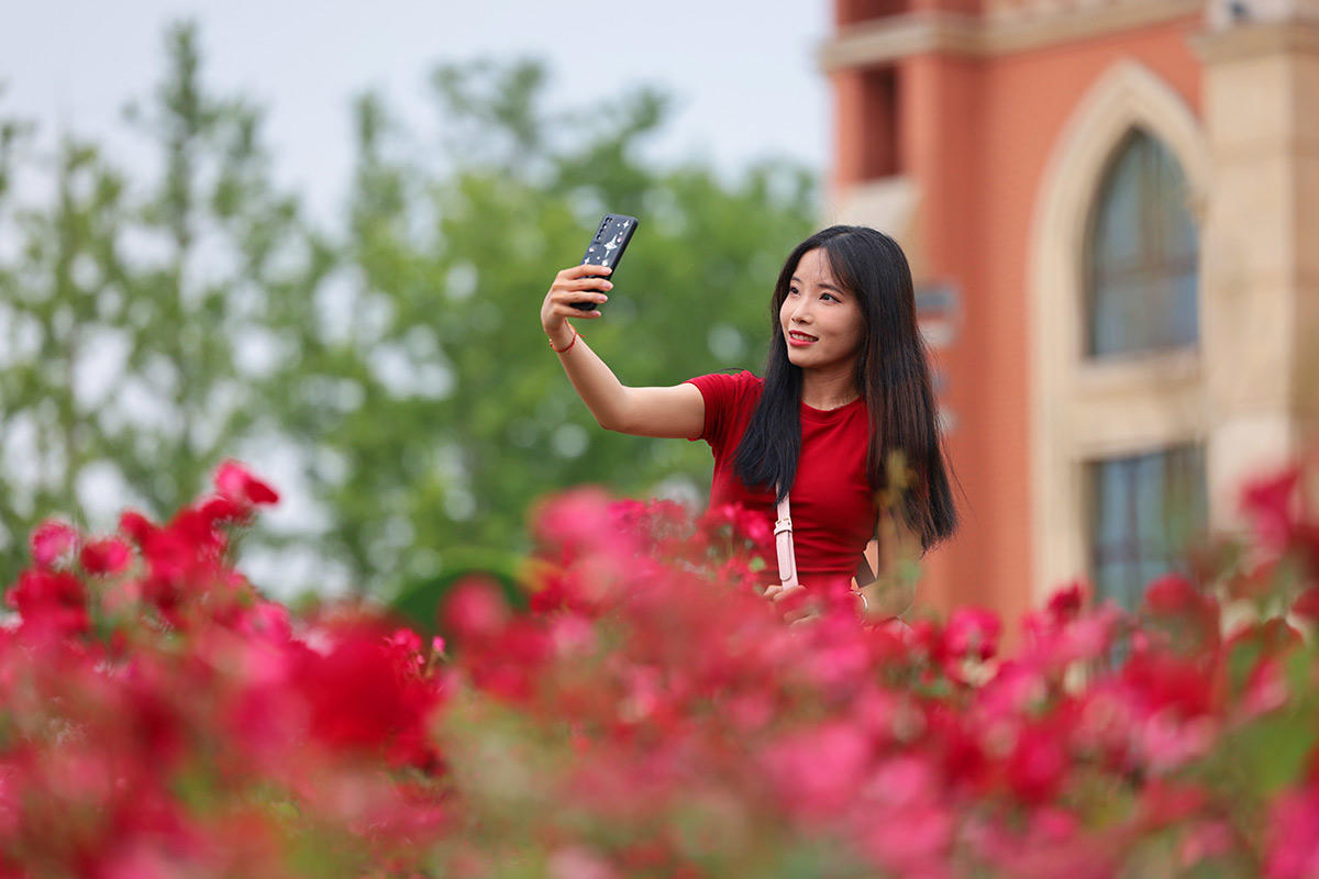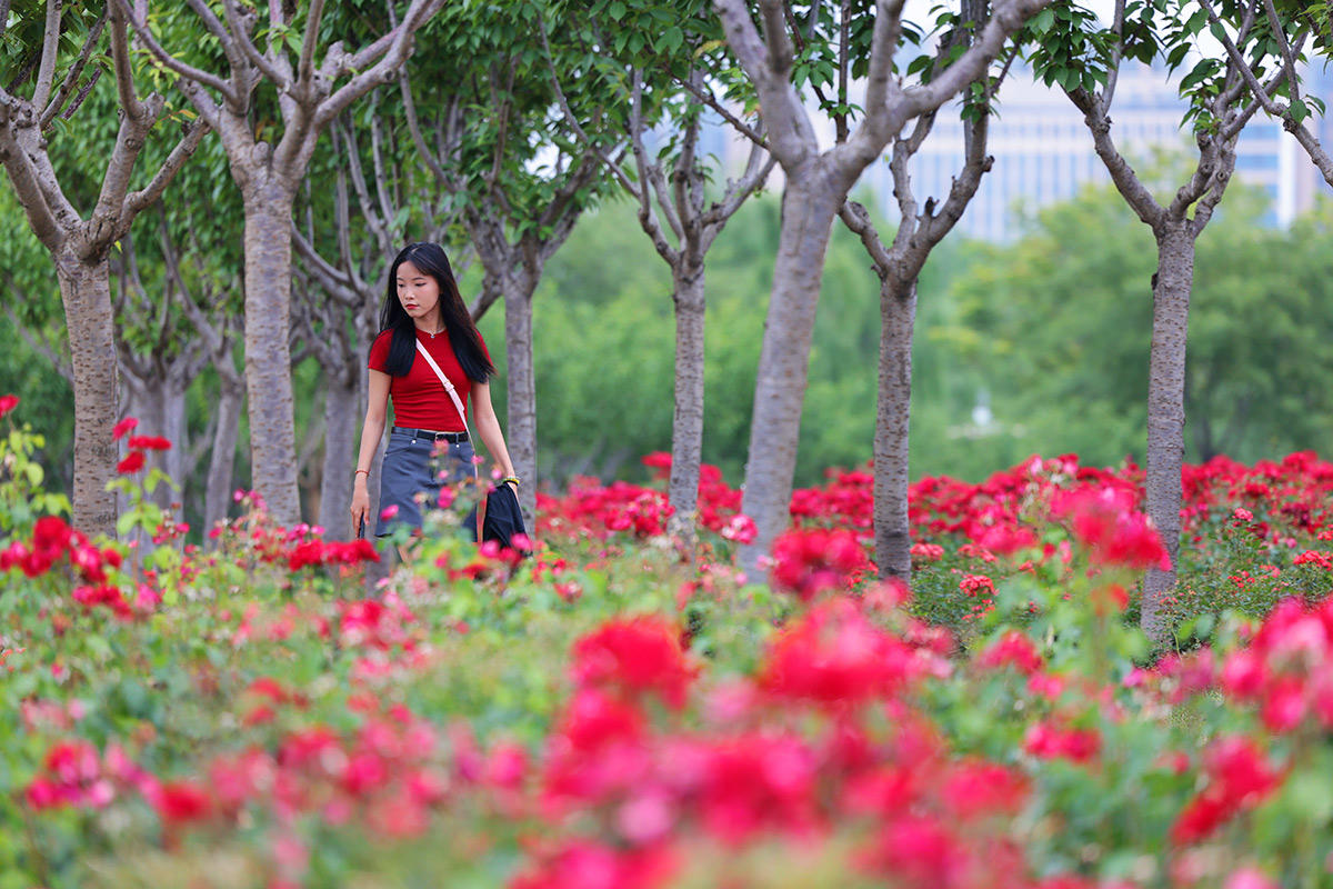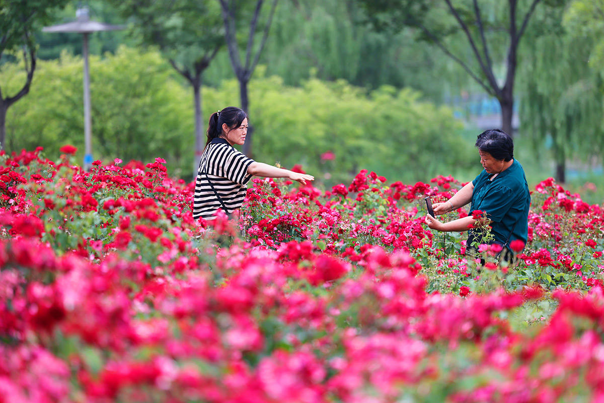 6月1日,市民在九州洼月季公园游园、赏花,感受水城最美的月季花海。夏日的水城,各色鲜花竞相绽放,色彩斑斓,美不胜收,成为一道道亮丽的风景线。近年来,我市努力打造四季常绿、三季有花的城市景观,市民幸福感、获得感持续提升。
