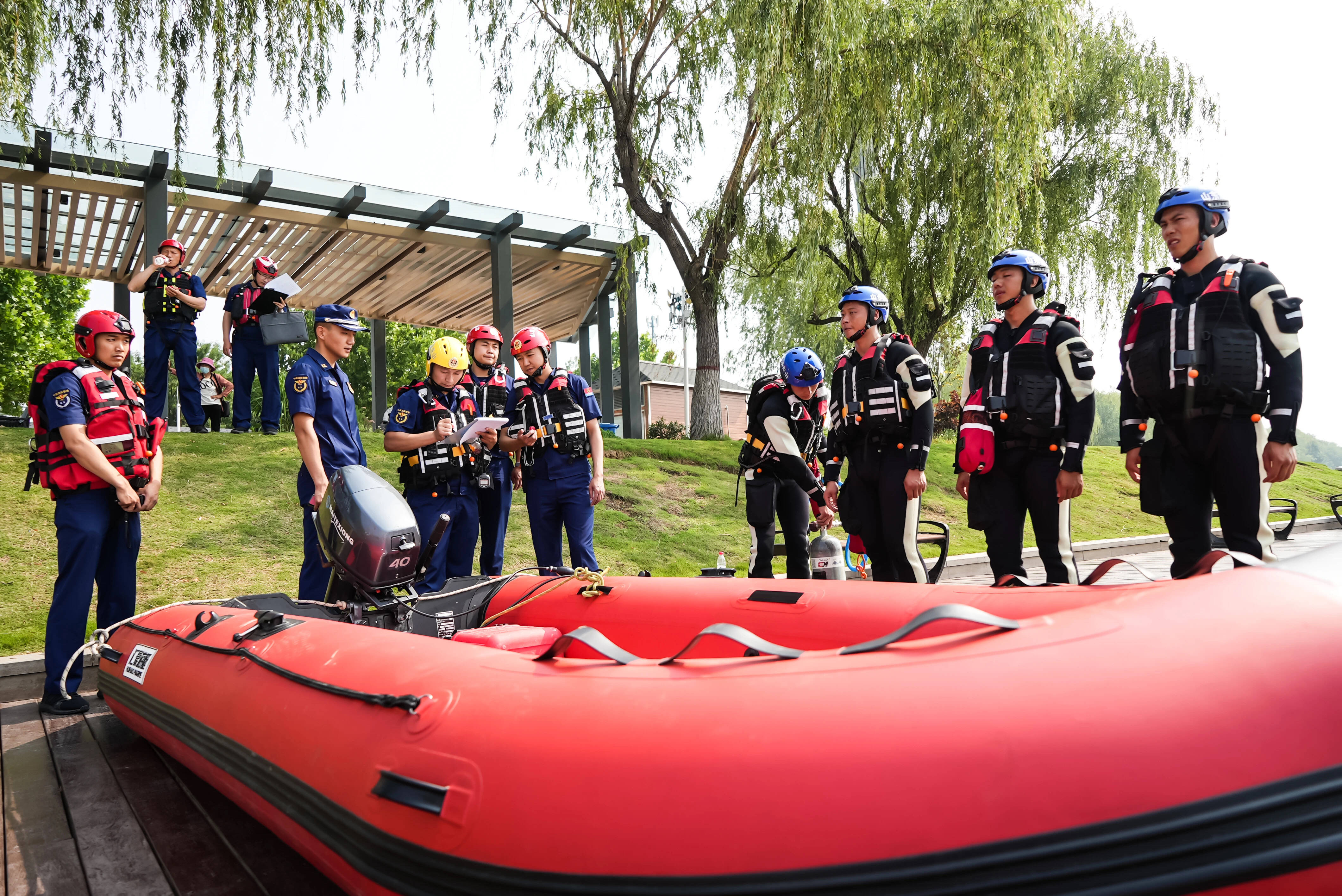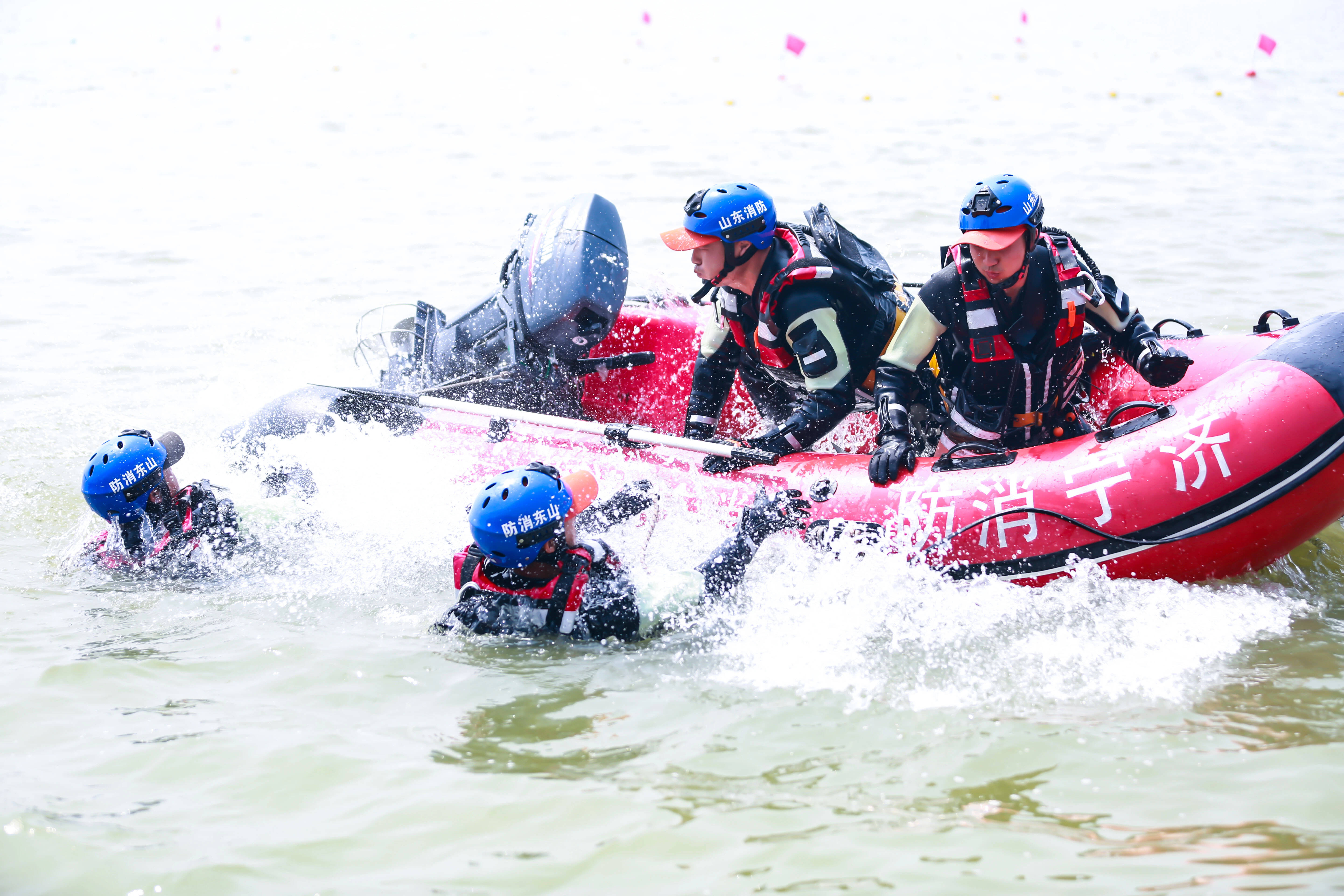 据了解,演练设置水域救援专业队出队结构检查、舟艇组装及个人防护装备检查、200米游泳能力、充气式动力橡皮艇翻舟自救、舟艇绕标、舟艇舷外机故障排除、潜水打捞7个共同考评科目,舟艇组装携行、舟艇活饵救援、离心快速救援、孤岛群众转移、急流抵礁安全转运、水面拦截技术综合运用、遇险船只人员营救、抛投器定点救生、水面机器人救生、无人机抛投救生圈救生、车辆坠海潜水打捞、桥降救援、远距离应急排水13个实战演练科目。抽调全省32名导调评估员全程跟队评判,是山东消防史上调集力量最多,设置科目内容最全、难度最高的防汛救援综合性演练。