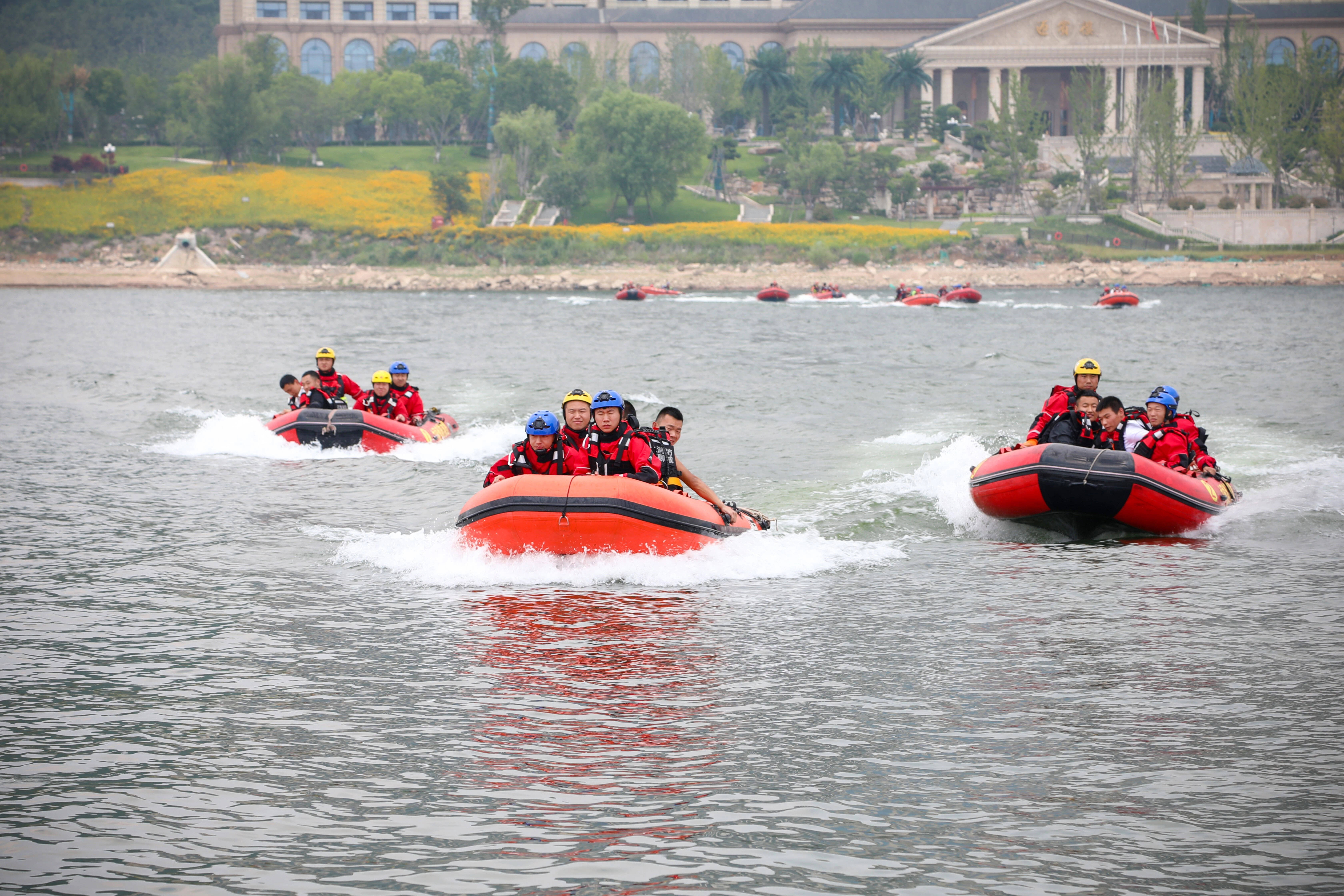 “当前,我省即将进入汛期,组织这次防汛实战演练,目的就是检验队伍应急处置能力,这也是学习贯彻习近平新时代中国特色社会主义思想主题教育的实践要求。此次演练科目设置针对性强,考核评判专业性强,基本涵盖了水域救援可能出现的情况,最大限度地贴近了现场救援实际,做到了演、练、考、教、学、研相结合。”山东省消防救援总队副总队长王发江表示。
