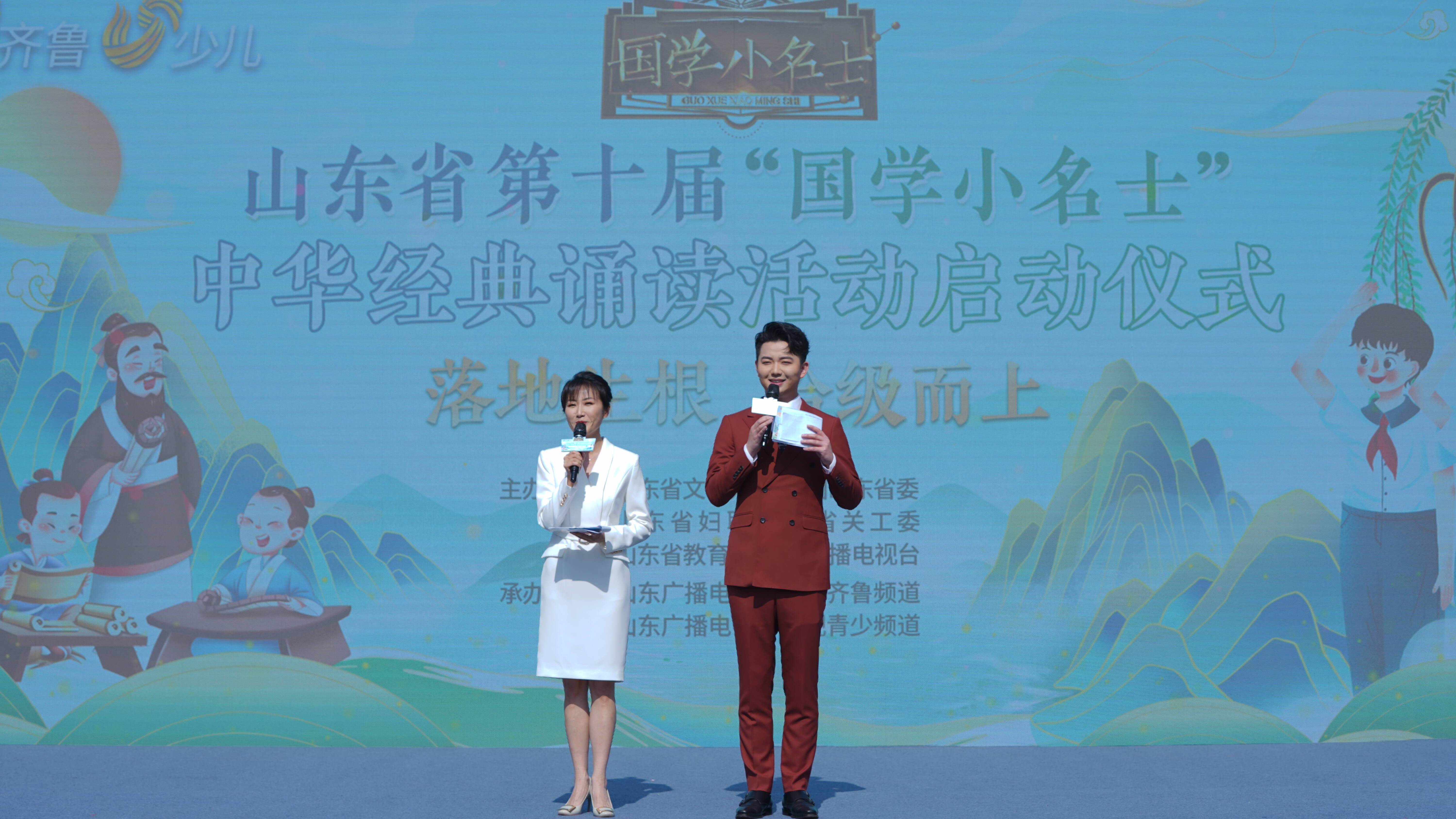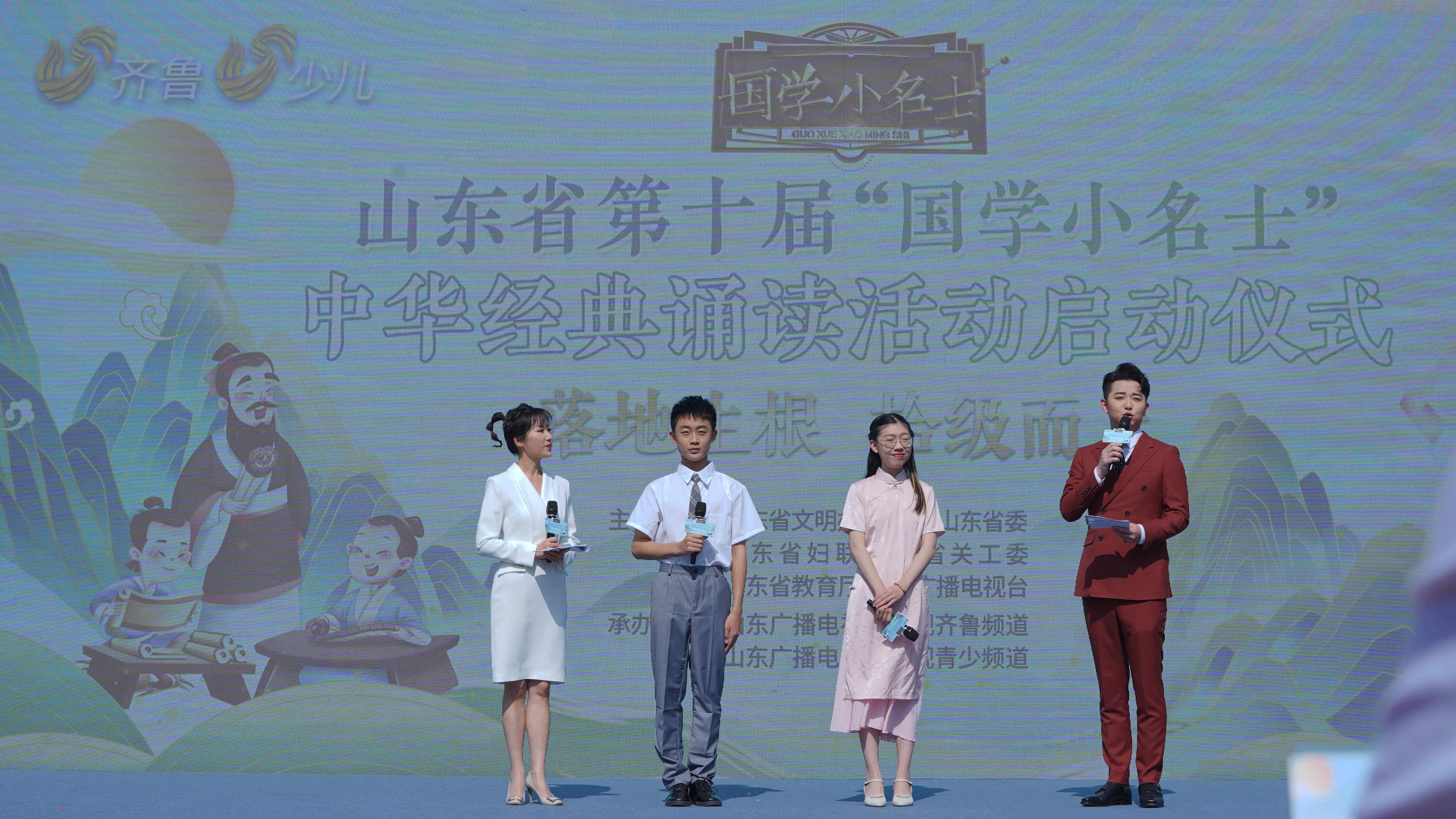 在第73个“六一”国际儿童节的到来之际,山东省第十届“国学小名士”中华经典诵读活动启动仪式于6月1日在济南市高新区东城逸家小学举行。本次活动由省文明办、团省委、省妇联、省关工委、省教育厅、山东广播电视台联合主办,山东广播电视台电视齐鲁频道、青少频道共同承办。今年的主题是——诵读经典 传承美德 诗润万家。