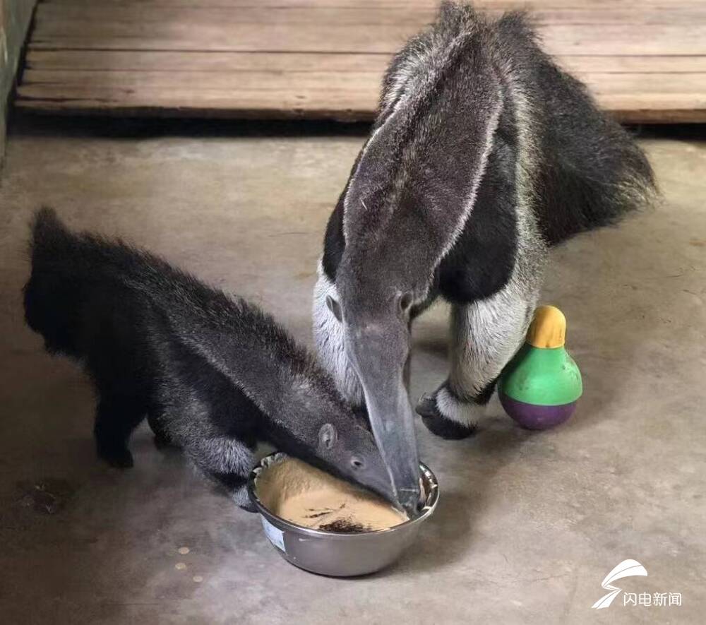 与此同时,天津市动物园一只雌性大食蚁兽“小马甲”也来到济南市野生动物世界与公众见面。