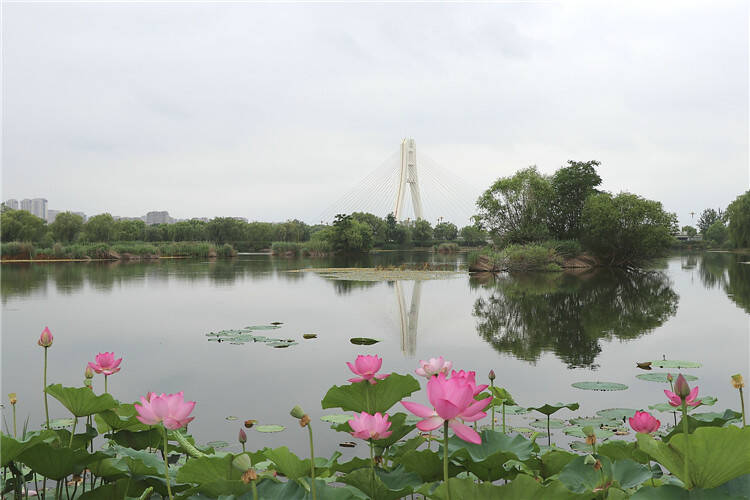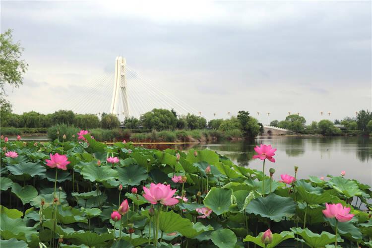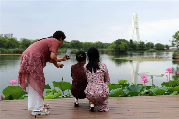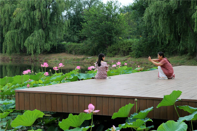 齐鲁网·闪电新闻6月29日讯 眼下,安丘大汶河国家城市湿地公园内的荷花正值盛花期,花色娇艳动人,吸引不少市民朋友前来打卡拍照。亭亭玉立的荷花千姿百态,分外妖娆,和绿意盎然的荷叶相互映衬,构成了一幅夏日清凉画卷,成为大汶河湿地公园的一道靓丽风景线。