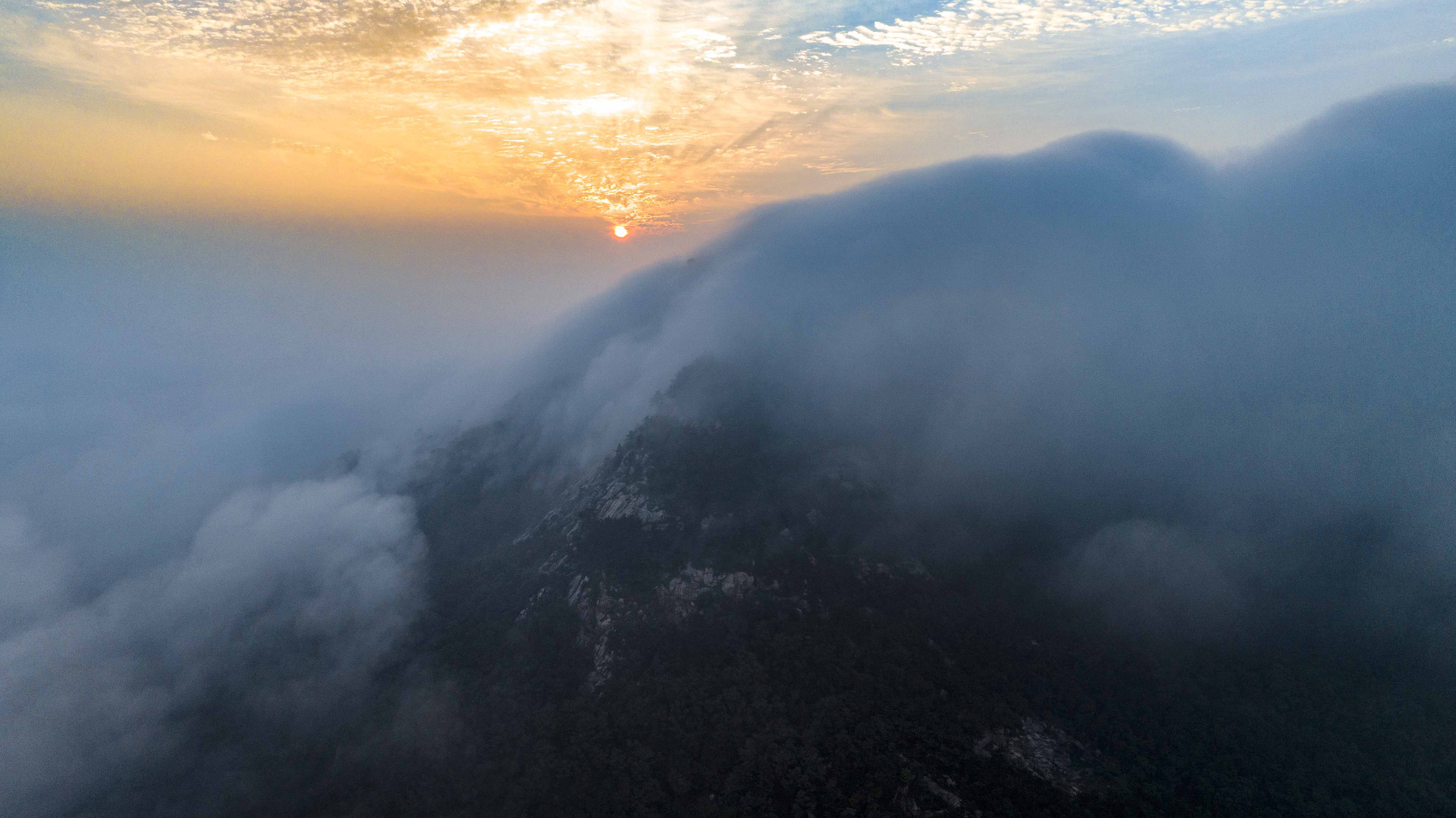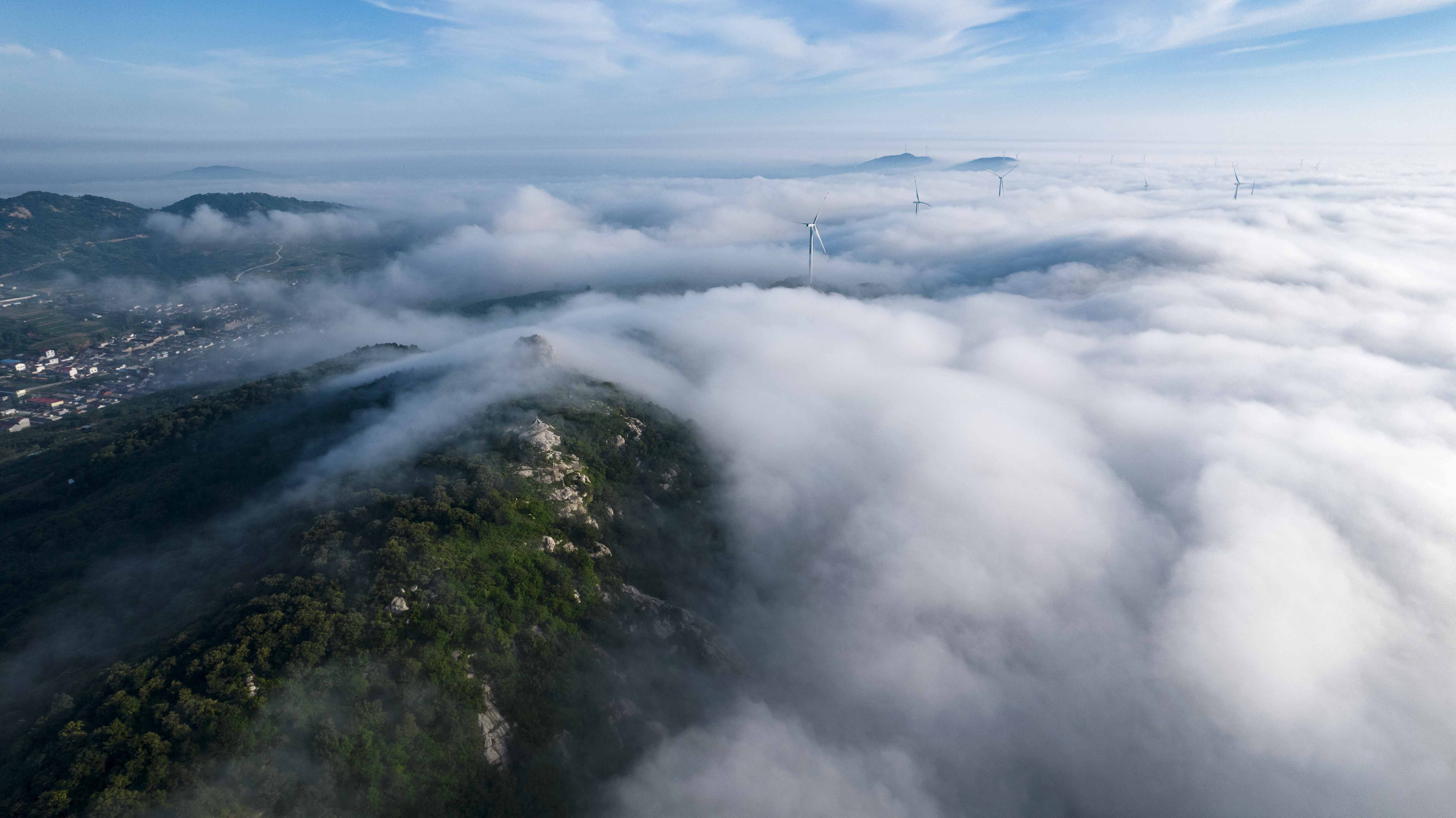 随着雨季的来临,临沭县苍马山风景区经常出现日出云海的壮美景观。洁白的云海时而风平浪静,时而如脱缰的野马在群山间翻腾游动。山峰、绿树掩映在云雾当中时隐时现,好似画家笔下绘成的一幅神奇的水墨丹青,蔚为壮观。