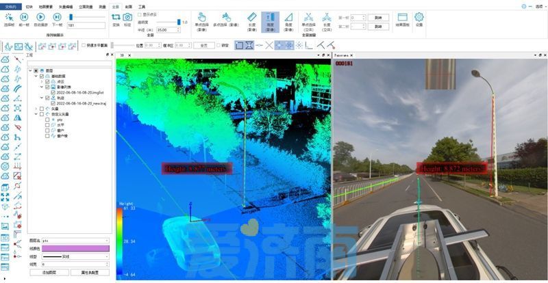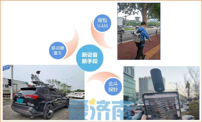 本次城市部件普查工作积极采用新型测绘设备-移动测量车、背包SLAM、北斗探针;定制开发了城市部件要素提取及处理软件,采用“点云+街景”的创新生产工艺,对比传统测绘手段,提高了3倍工作效率。