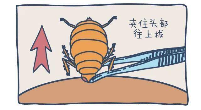 ▲被蜱叮咬后不要惊慌,可以就近就医,或可用酒精涂在蜱身上,使蜱头部放松或死亡,再用尖头镊子取下蜱,不要生拉硬拽,以免拽伤皮肤或将蜱的头部留在皮肤内,取出后,再用碘酒或酒精做局部消毒处理,并随时观察身体状况;有蜱叮咬史或野外活动史者,一旦出现发热等可疑症状或体征,应当及早就医,并告知医生相关暴露史。