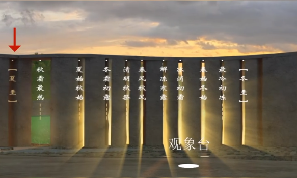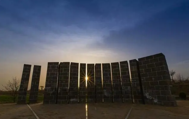 观象台由13根夯土柱和一个观测点组成,古人站在观测点上,通过柱子之间12个缝隙观测日出确定一年四季的节气。