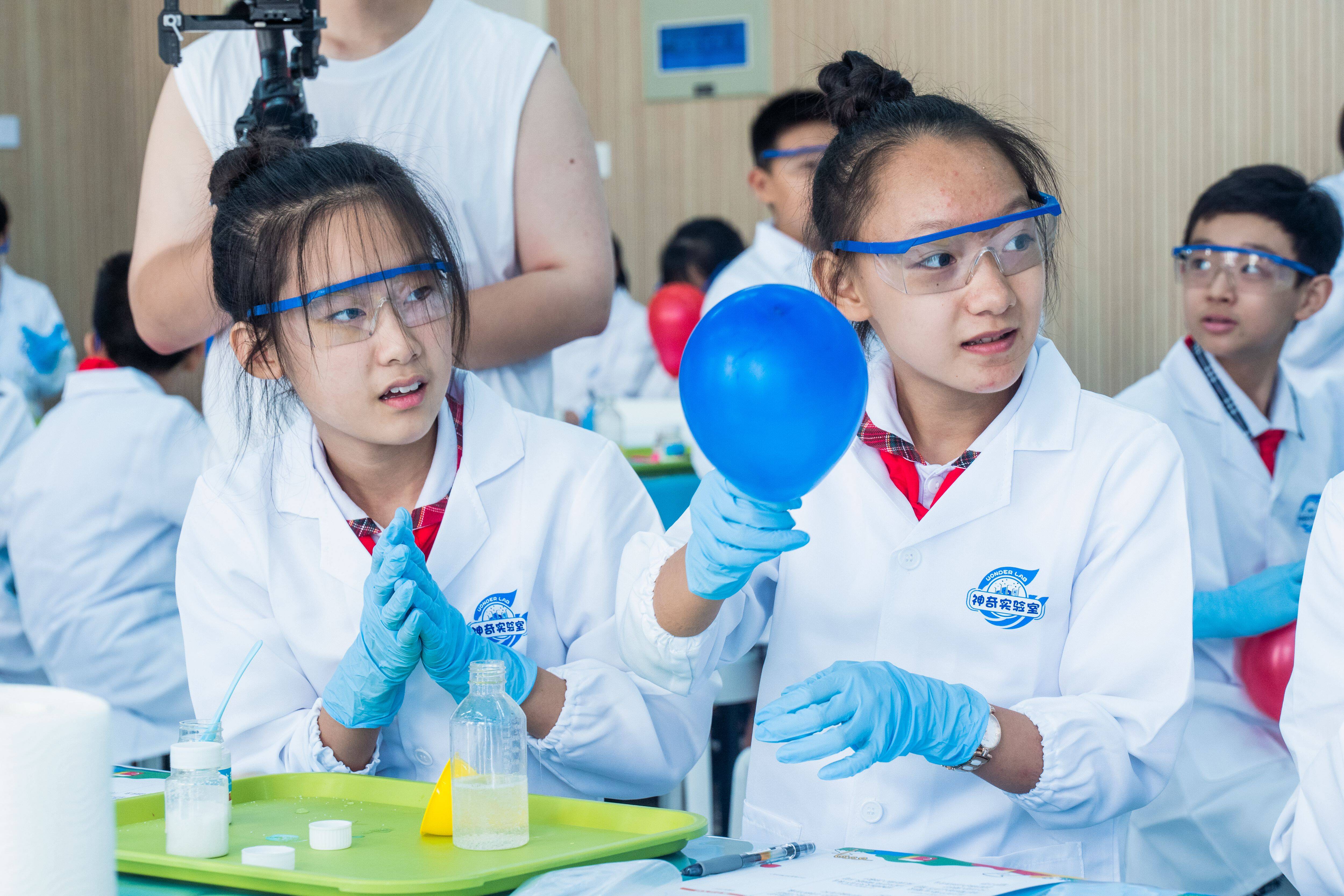 同学们迫不及待走进第一实验学校的科学探索中心,万华化学武高健博士为孩子们带来了一场神奇的化学魔法秀。