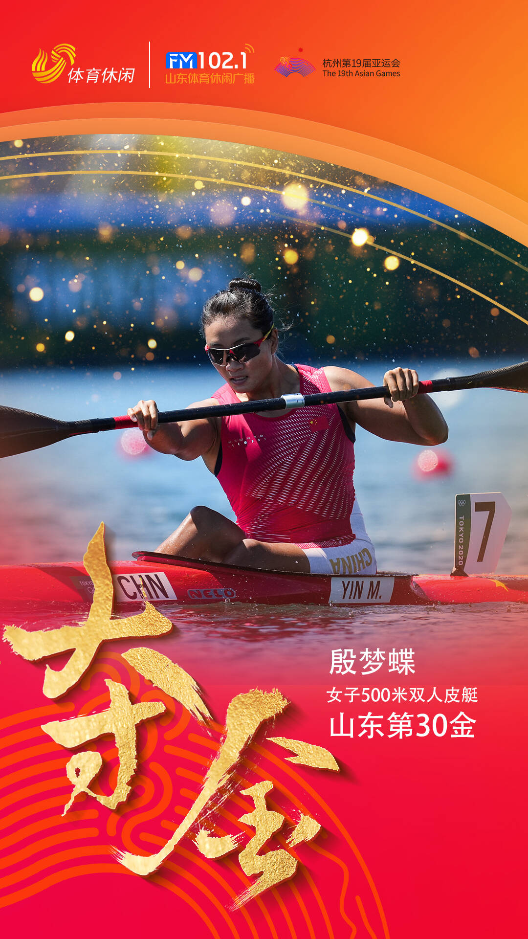 齐鲁网·闪电新闻10月2日讯 山东体育休闲频道消息,在刚刚结束在女子500米双人皮艇决赛中,山东运动员殷梦蝶搭档队员斩获冠军,为中国队收获一枚宝贵的金牌,这也是山东运动员在本届亚运会上斩获的第30枚金牌。山东体育休闲频道 张维 王海洋