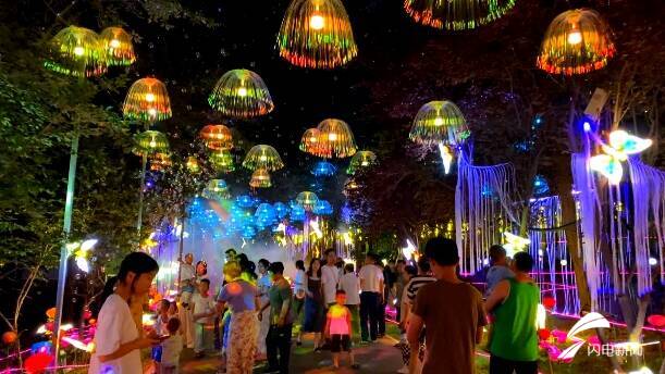 公园里,游客纷纷拿起手机拍照留念,记录精彩瞬间。除了灯光秀之外,今年国庆假期,该景点还推出文艺展演,让游客亲身感受传统文化的独特魅力。
