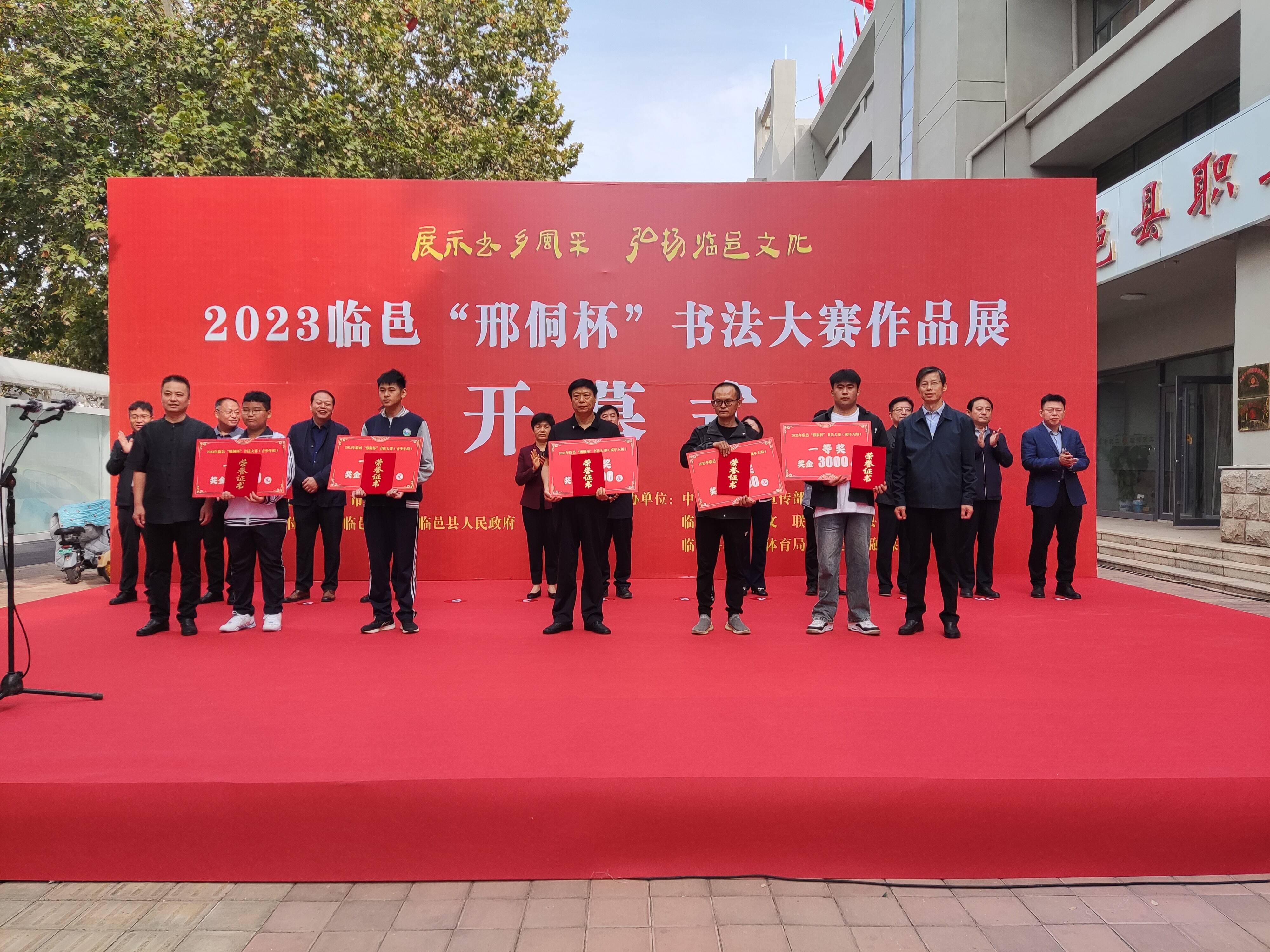 齐鲁网·闪电新闻10月12日讯 展示书乡风采,弘扬临邑文化。10月12日,2023临邑“邢侗杯”书法大赛作品展举行开幕式。活动由德州市文联指导,中共临邑县委、临邑县人民政府主办,临邑县委宣传部、临邑县文化和旅游局、临邑县文联、临邑县总工会、临邑县教育和体育局、临邑县融媒体中心承办。