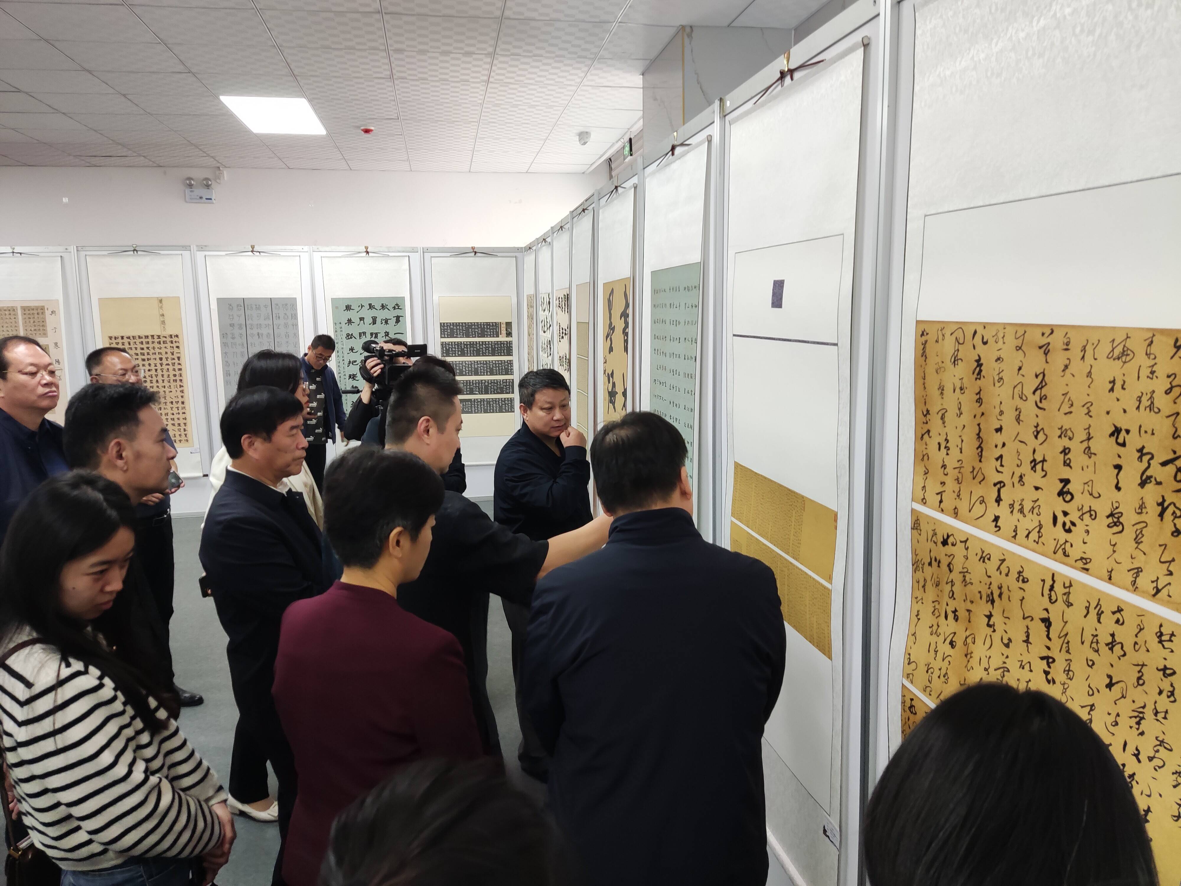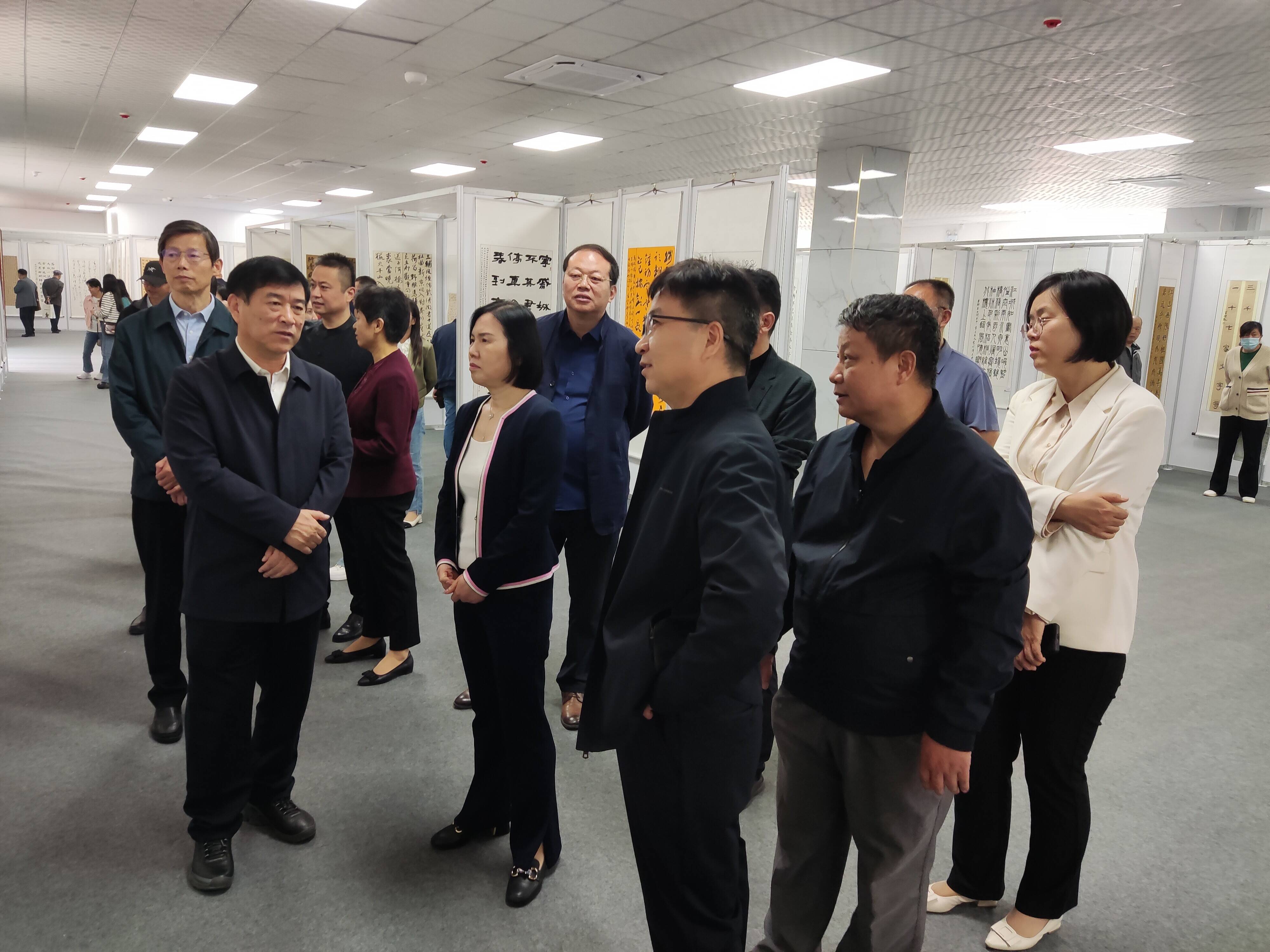 开幕仪式后,参加活动的领导、嘉宾和社会各界的书法爱好者们一起参观了展览的书法作品。一件件书法作品精美非凡,篆隶楷行草五体皆备,风格或大气磅礴,或舒缓细腻,或隽秀飘逸,不同风格,不同题材交相辉映,跃然纸上,既体现了对优秀传统文化的传承弘扬,又展现了新时代的精神气象,引得现场参观者们不时驻足品评。