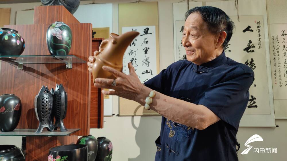 在中国龙山黑陶历史研学馆,山东省级非物质文化遗产龙山黑陶制作技艺代表性传承人刘德功向记者团介绍了龙山黑陶的制作技艺与发展历程。据介绍,龙山黑陶特别是古老的蛋壳陶创造了世界制陶业的巅峰,是龙山文化的代表器物。因1928年首次发现于山东省济南市章丘区龙山街道的城子崖,所以称作“龙山文化”。
