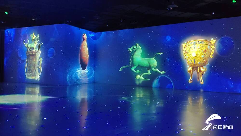 国家宝藏|奇幻空间是中央广播电视总台《国家宝藏》首个线下体验馆,占地2500余平米,包括沉浸体验场、国宝盒子、国宝庭院及国宝文创四部分。体验馆提取传统文化中代表东方智慧与美学的九件国宝,通过沉浸交互、数字艺术和装置艺术演绎文物,打造乐园式超时空文化博物馆。依次呈现千里江山图、清乾隆釉彩大瓶、战国铜餐具、人头型器口彩陶瓶、“五星出东方利中国”锦护膊、竹林七贤与荣启期砖画、大唐彩绘散乐浮雕、良渚玉琮、万岁通天帖等9件国宝。