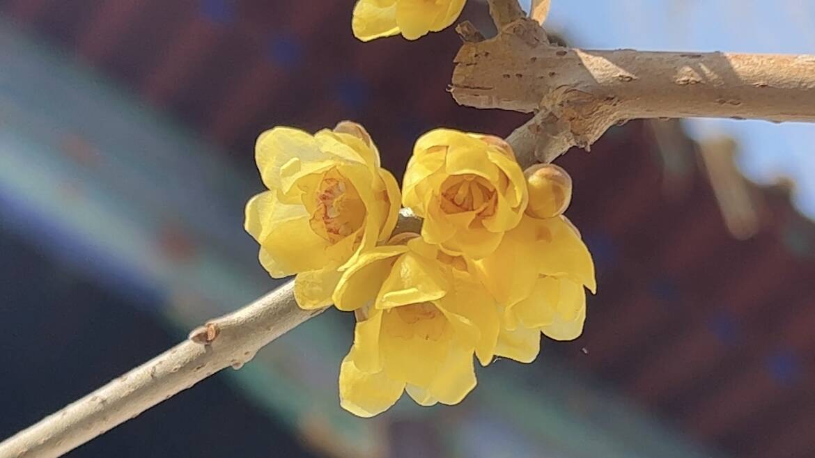 景区内白梅清雅脱俗;蜡梅疏影暗香,令人陶醉。梅香、泉水、建筑相得益彰,构成了一道靓丽的风景线。
