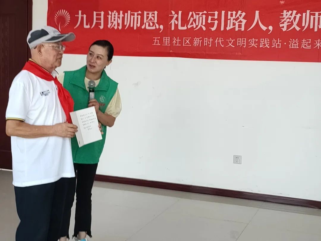 “天涯海角有尽头,师恩在心情永久”,金风送爽、硕果满枝的美好时节,又迎来一年一度的教师节。每一个学生的成长都离不开老师的教育,都凝聚着老师的心血,老师用他们的青春岁月,成就了学生的知识积淀,用他们辛勤的汗水,造就了学生的健康快乐成长,为了表达对老师的尊敬和爱戴,9月9日上午,文登区天福街道五里社区党总支联合溢起来志愿服务中心为红色合伙人天福小学老师们在社区新时代文明实践站礼赞教师节。