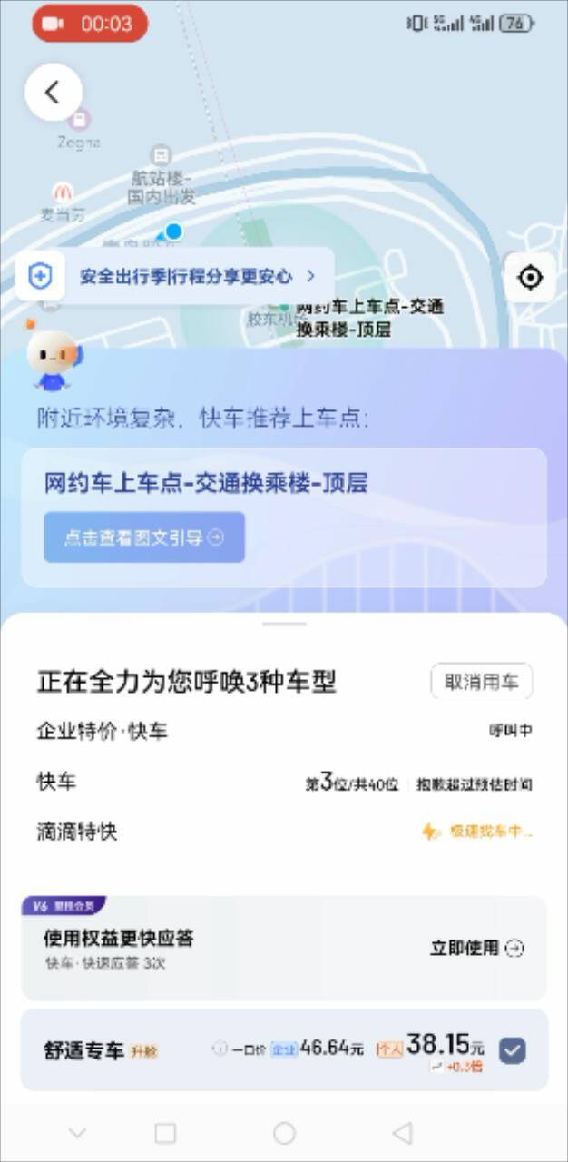 王先生:再打不着附近找个酒店住了。我第一次遇见这种,打车很难打。再不敢墨迹了,墨迹手机没电了,我跟你说这边是最恶心的,我去了好多地方,北京,重庆,合肥,武汉都没有这么夸张过。最后,王先生将费用加到了198元才呼叫上网约车离开机场。而另一位正在呼叫网约车的李女士家住城阳区,因为迟迟呼叫不到网约车,出租车费用太高,希望能够寻找到同行的人一起拼车,但是车辆并没有运营资质,属于“黑车”。