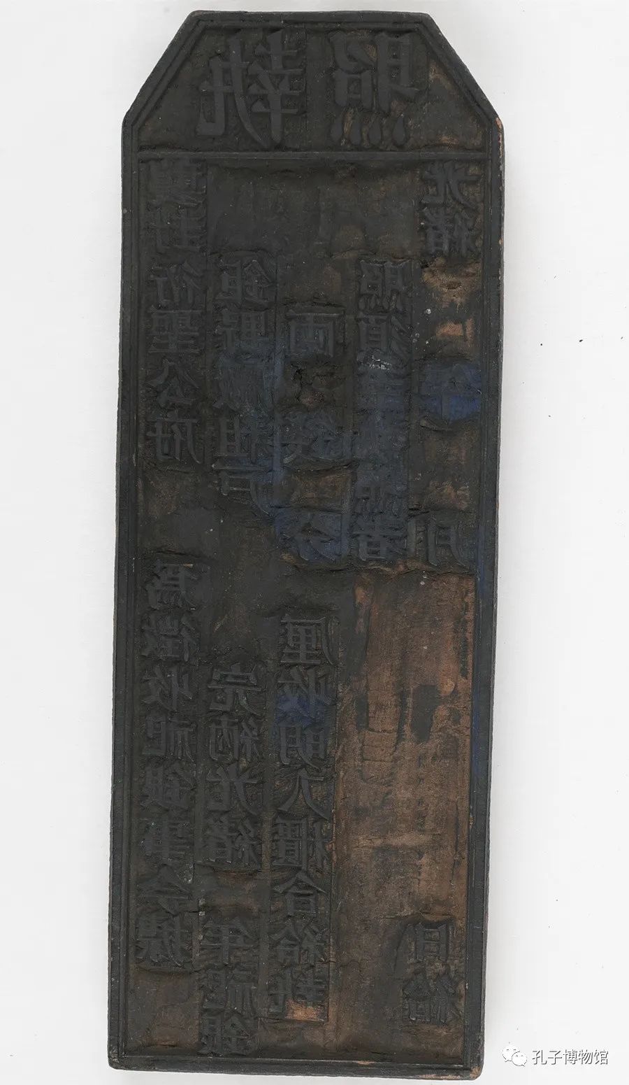 高16.3厘米,宽9.3厘米,厚1.6厘米。单版。雕版分为上下两部分,上部刻“曲阜县”三字,表明是曲阜本地所用文书,下部从左至右依次刻“为攒运粮储事。今据社辆领运漕粮运赴水次交纳,如违限期,定责不贷。须票。年月日号。”
