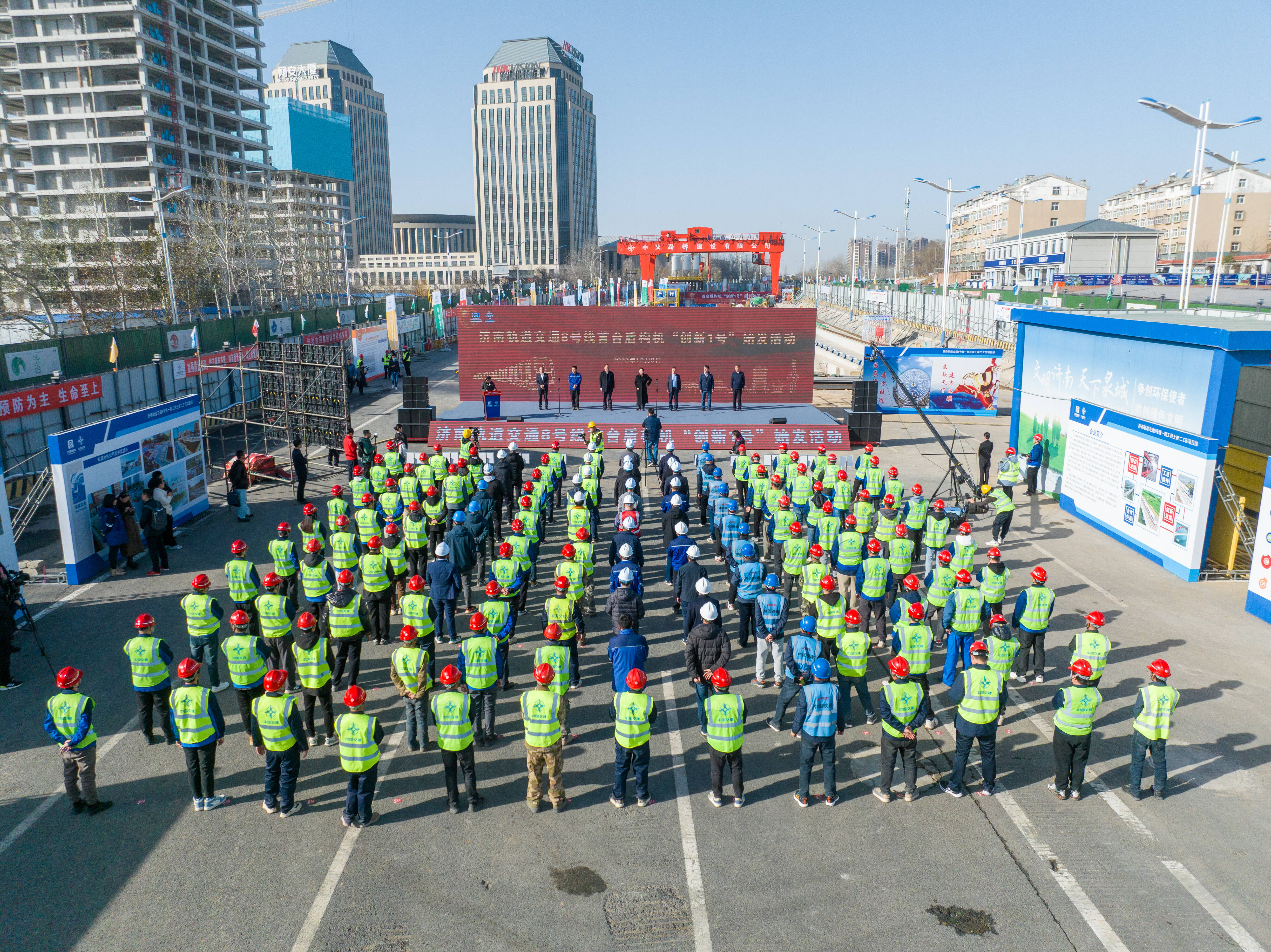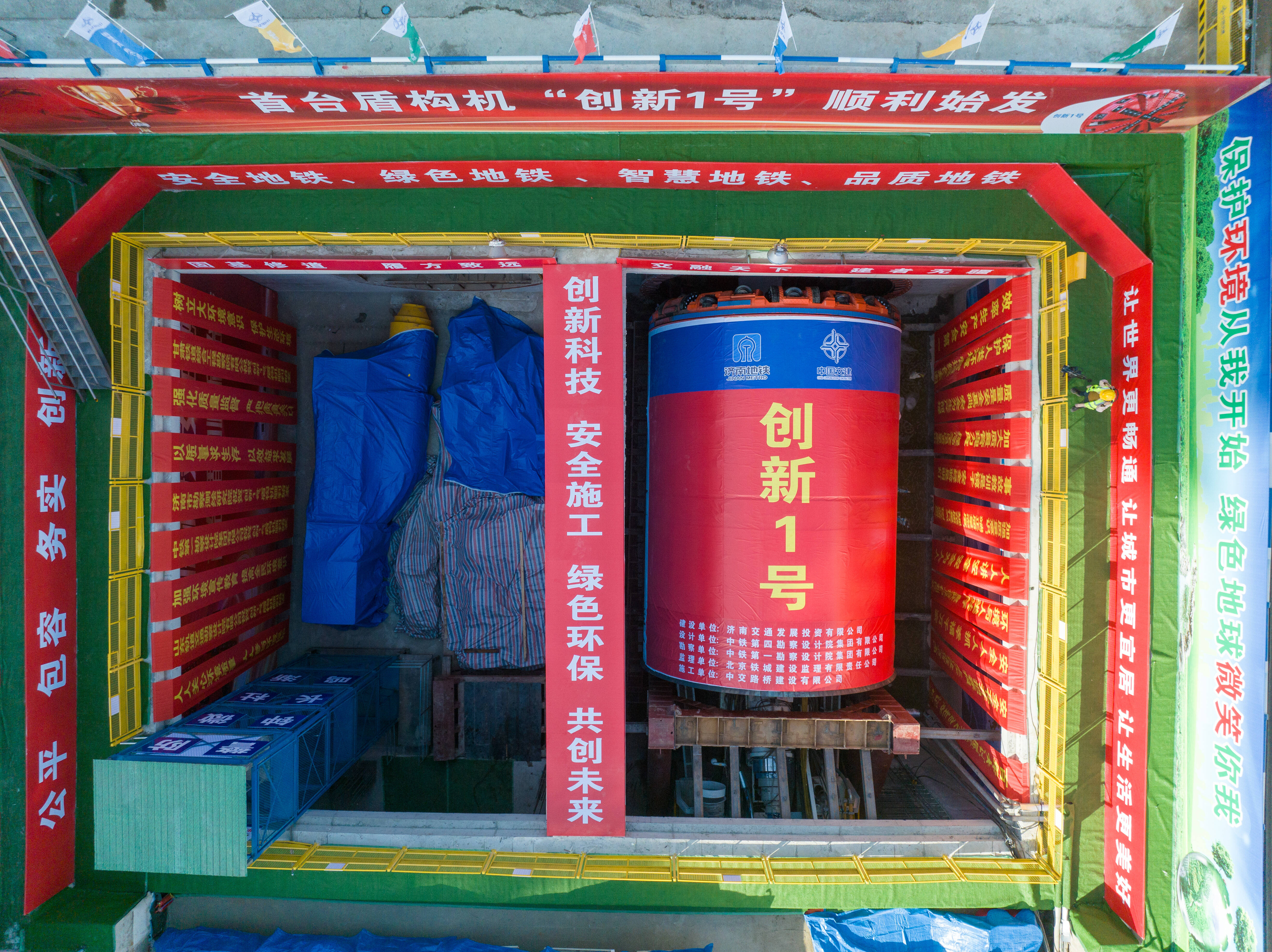 12月8日,济南轨道交通8号线一期工程首台盾构机“创新1号”在围子山站(站点名称均为工程名)至彩龙路站明挖区间始发。