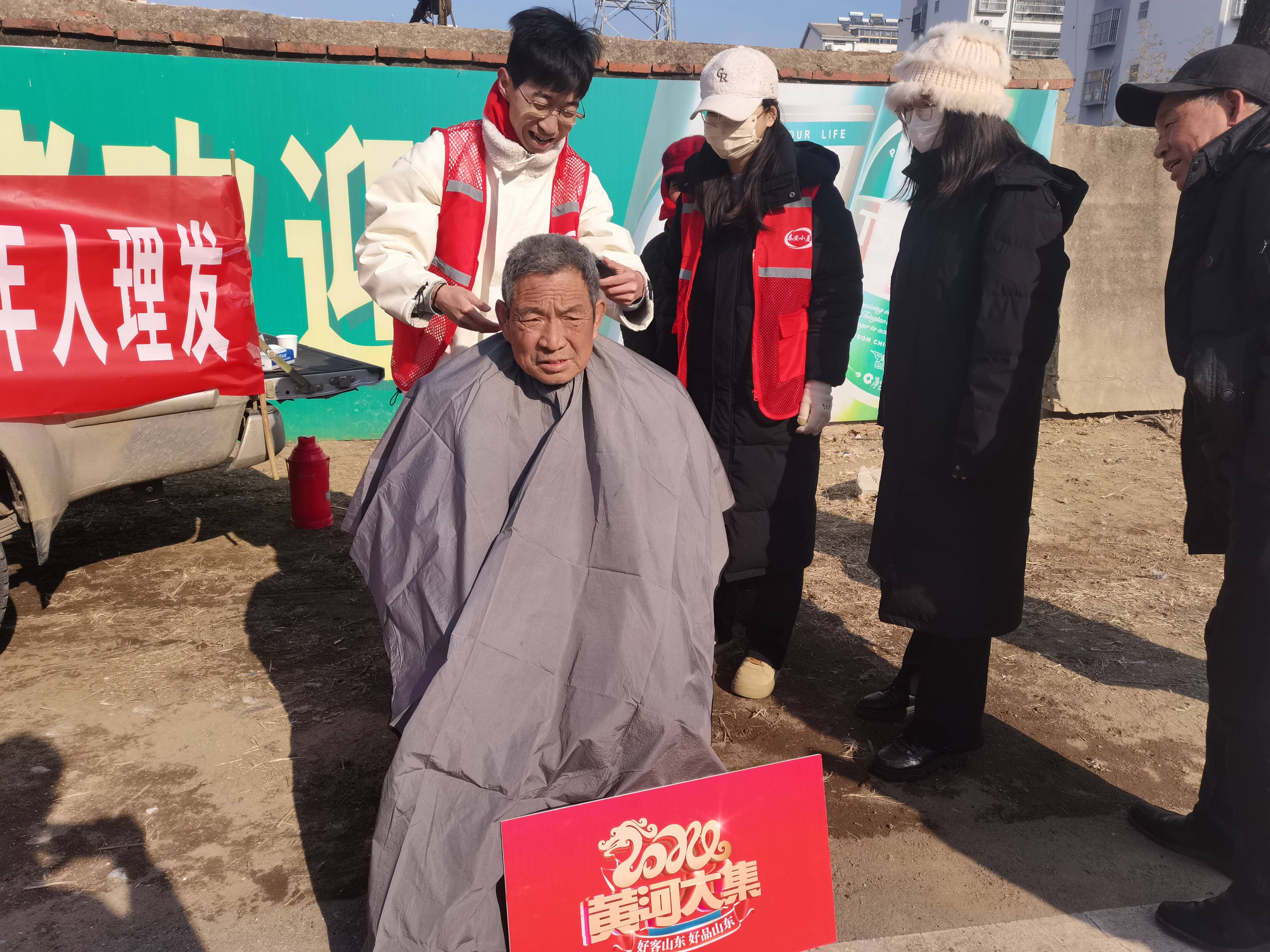 近日,在黄河大集的热闹氛围中,东疏镇的志愿者们开展了一场温馨的公益活动,为老人们提供免费理发服务,用实际行动传递新春的温暖和祝福。