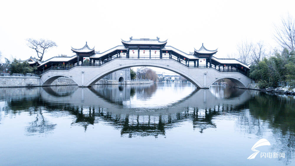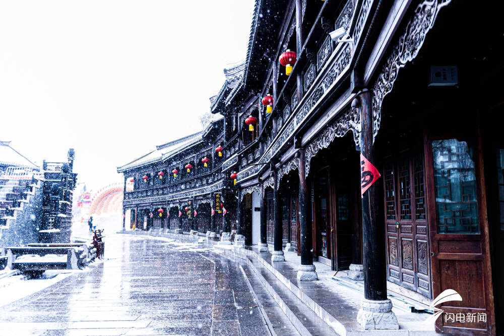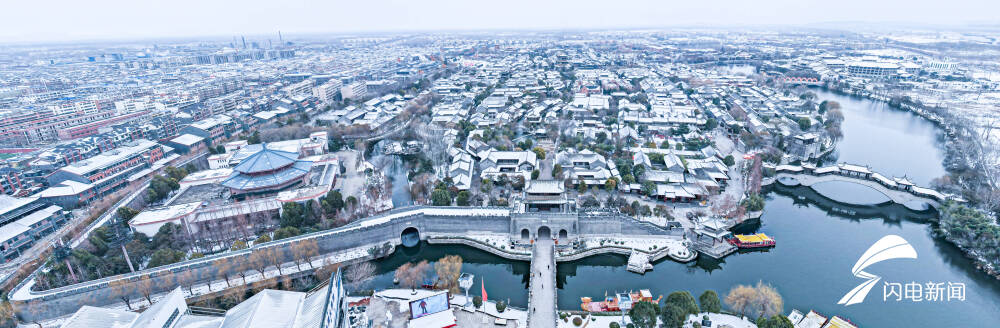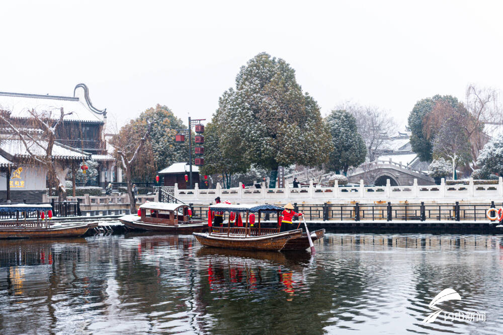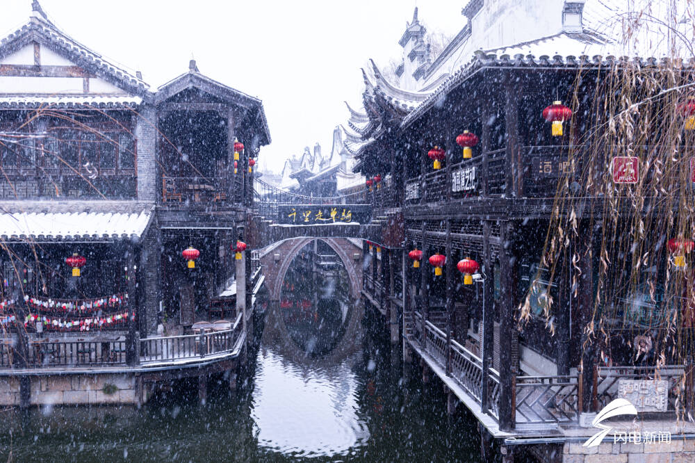齐鲁网·闪电新闻2月5日讯 瑞雪兆丰年,皑皑白雪与枣庄市台儿庄古城相映成趣,仿佛一幅浑然天成的画作。俯视台儿庄古城气韵万千,近观摇橹小舟,火红的灯笼,悠扬的渔歌,让台儿庄古城不是江南更胜江南。