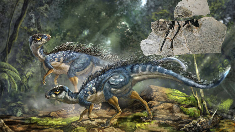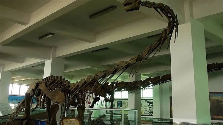 恐龙化石,是指恐龙死后身体中的软组织因腐烂而消失,骨骼(包括牙齿)等硬体组织沉积在泥沙中,处于隔绝氧气的环境下,经过几千万年甚至上亿年的沉积作用,骨骼完全矿物化而得以保存。此外恐龙生活时的遗迹,如脚印等有时间也可以石化成化石保存下来。