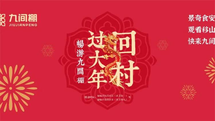 瑞兔辞旧去,龙腾新年来!为迎接新春的到来,感受新年喜庆欢乐的氛围,唤醒传统年味记忆,平邑县九间棚景区携精彩纷呈的春节活动,邀您一起迎新年。春节期间,让我们一起“回村过大年 畅游九间棚”
