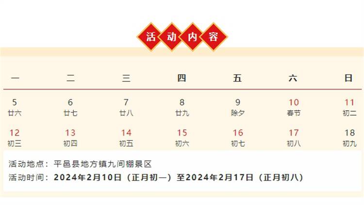 活动时间:大年初一至初八;活动地点:游客中心前广场