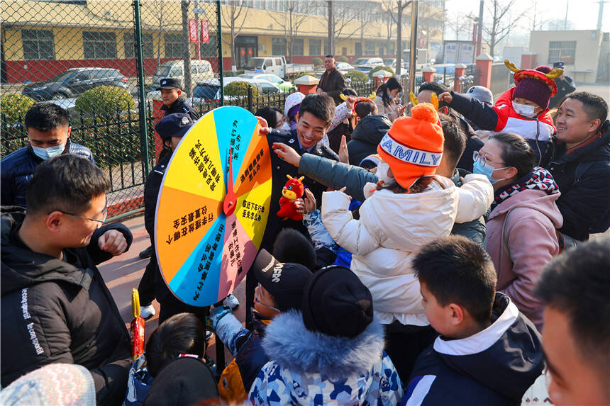 期间,特警队员和青年乘警根据到场人员情况,量身定制了问答环节,幸运大转盘给大家带来了一场“头脑风暴”,通过一问一答,让大家在轻松愉快的氛围中了解了个人安全和乘车安全小常识。