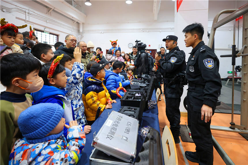 齐鲁网·闪电新闻1月9日讯 为进一步凝聚警心、激励队伍、展示形象、密切警民关系,在警察节即将到来之际,青岛铁路公安处举行警营开放日活动。广大民警家属、退休老同志以及长久以来关心关注铁路公安工作的热心群众共同走进特警支队驻地,近距离沉浸式体验精彩的警营生活。