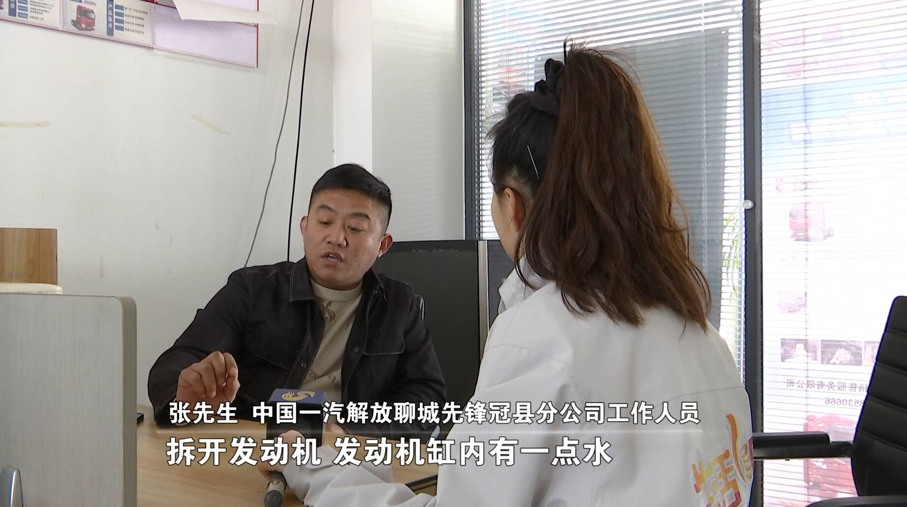 中国一汽解放聊城先锋冠县分公司工作人员张先生:“我们是销售人员,质量问题有服务站,不论质量原因也好,还是客户开车的原因也好,这个东西我们不去评判。”