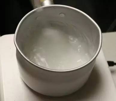 4.搅动不能停止,速度要均匀。溶解的面粉随着水分蒸发,能看到面粉的浓度越来越浓;
