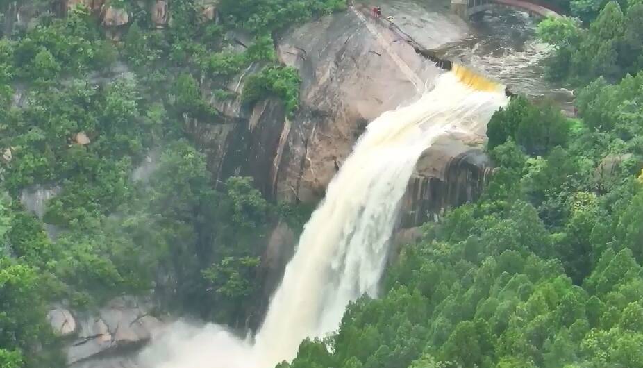 山没有水,如同人没有眼睛,似乎少了灵性。我们敢于在雨中登泰山,看到有声有势的飞泉流布,倾盆大雨的时候,又恰好在斗母宫躲过,一路行来,有雨趣而无淋漓之苦,自然也就格外感到意兴盎然。
